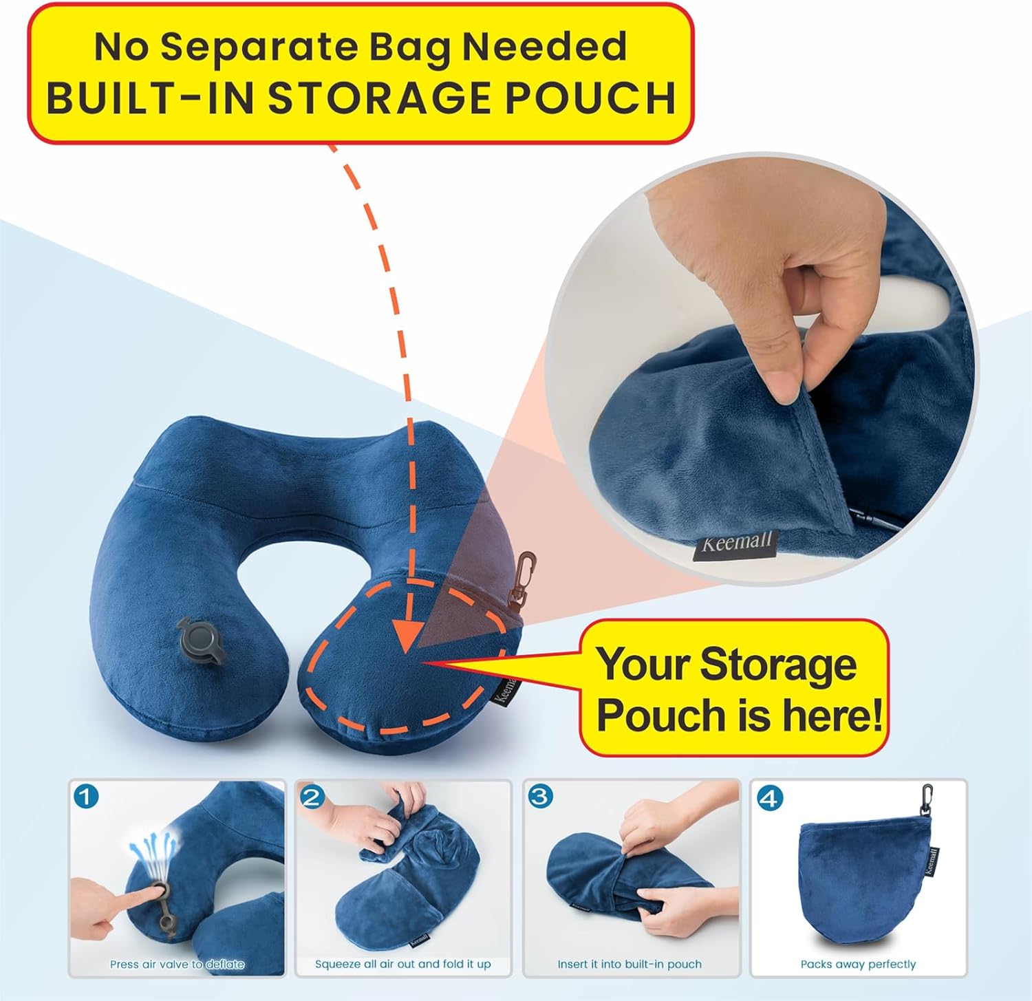 - Quick Inflation and Deflation: It inflates and deflates very easily. It folds into its own pocket ,which enabling you to set up or pack away the pillow quickly and efficiently, saving time and effort