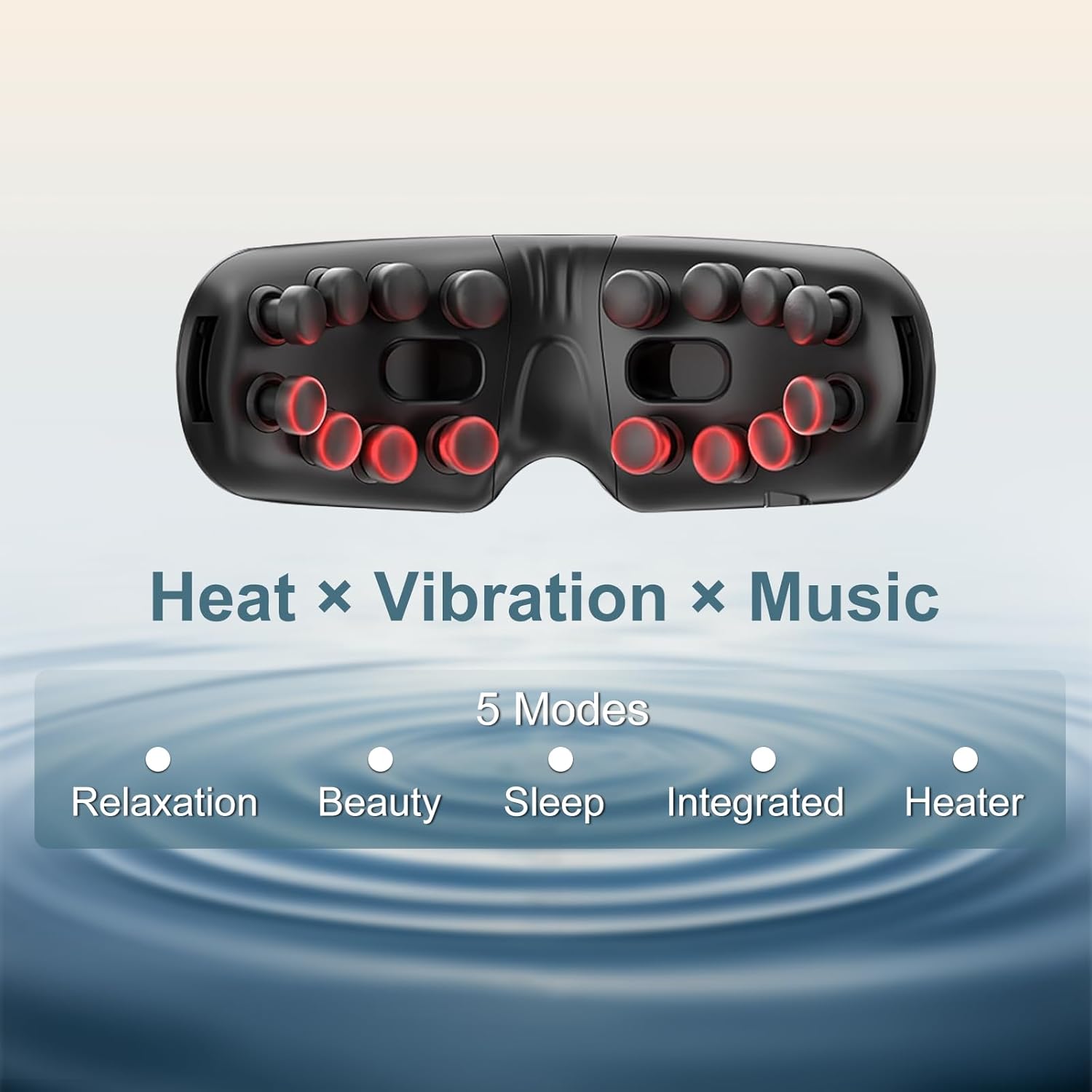 Fullicon Eye Massager with Heat & Vibration, Ultra Light Migraine Relief Products, Foldable Mask with Bluetooth Music, Face Massager with Type-C Charging, 5 Modes FSA Eligible Items Only List (Black)