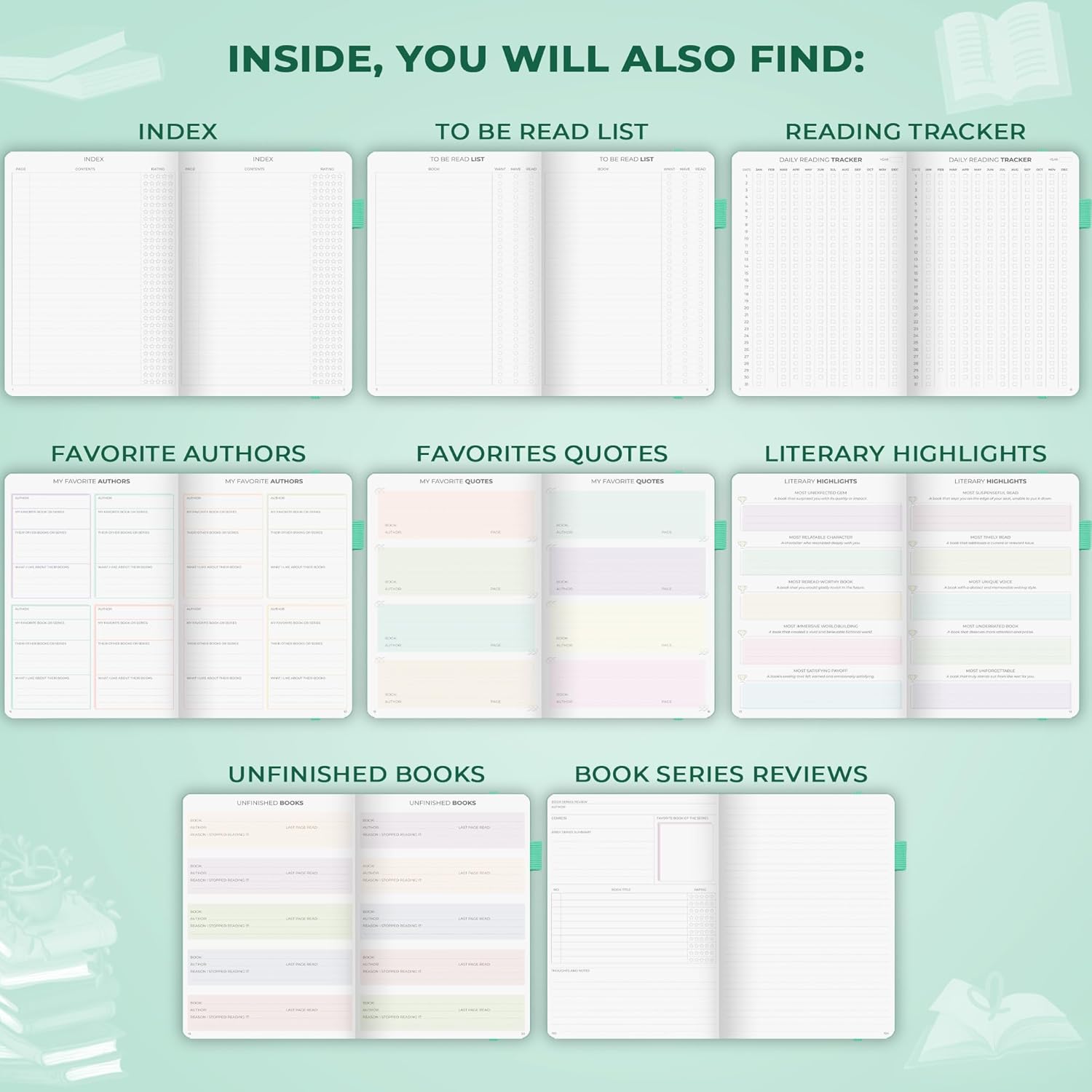 - ALL-IN-ONE READING COMPANION – This book journal reading log also includes sections for favorite quotes and authors, books you want to read, literary highlights, and unfinished books, making it the perfect tool for any book lover.
