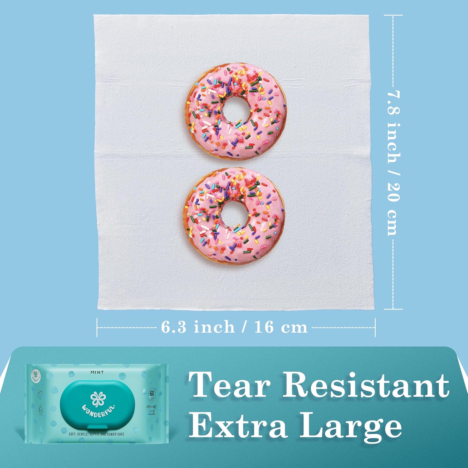 - 🌿MINT & PREMIUM QUALITY: Wonderful Flushable Wipes are great alternative or supplement to toilet paper. Our butt flushable wipes are made with superb quality of plant-based fibers, providing a refreshing, clean feel and your butt can stay cool. Designed for adults, kids, feminine, babies, dudes use, pets safe.