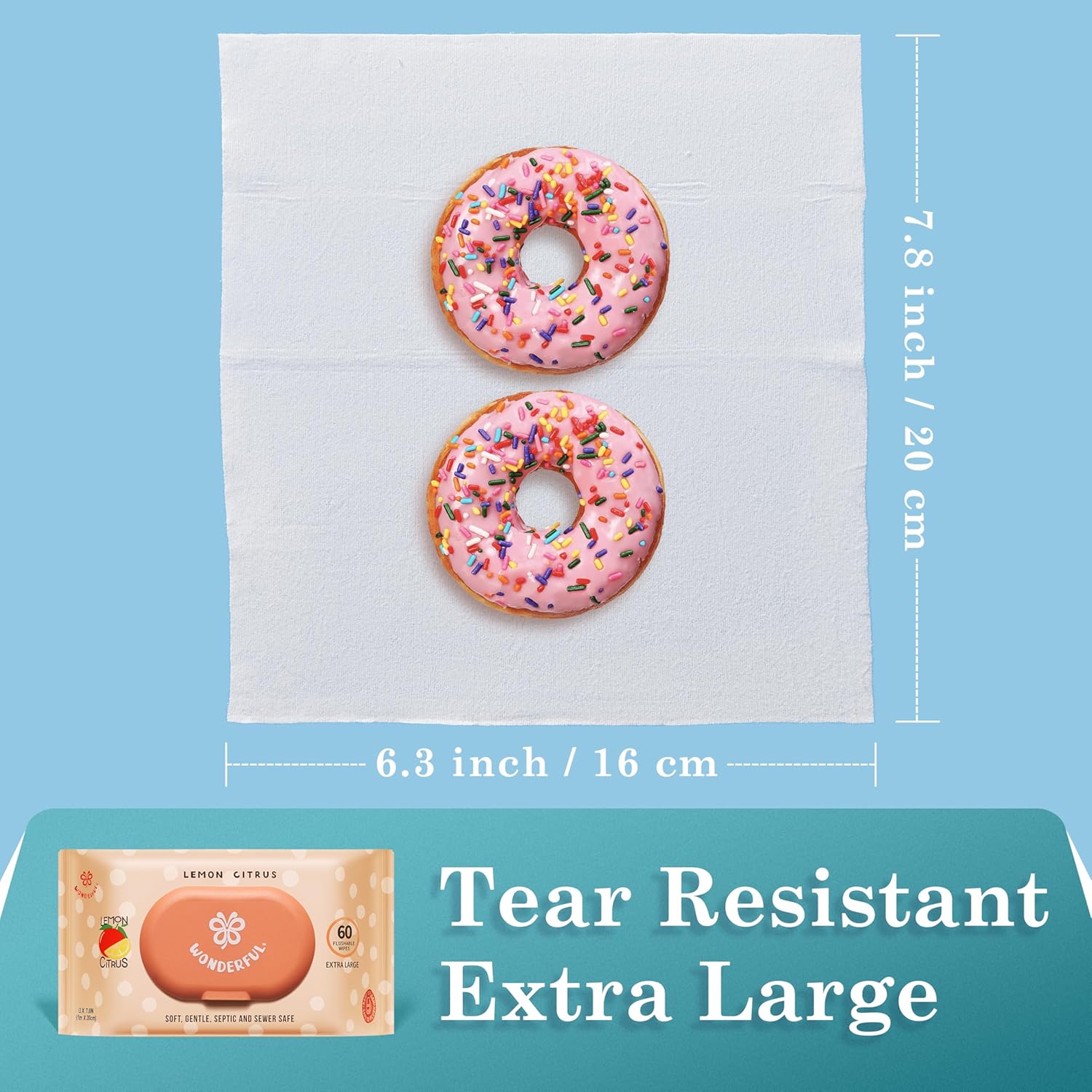 - 🍊LEMON CITRUS & PREMIUM QUALITY: Wonderful Flushable Wipes are great alternative or supplement to toilet paper. Our butt flushable wipes are made with superb quality of plant-based fibers, providing a refreshing, clean feel and your butt can stay cool. Designed for adults, kids, feminine, babies, dudes use, pets safe.