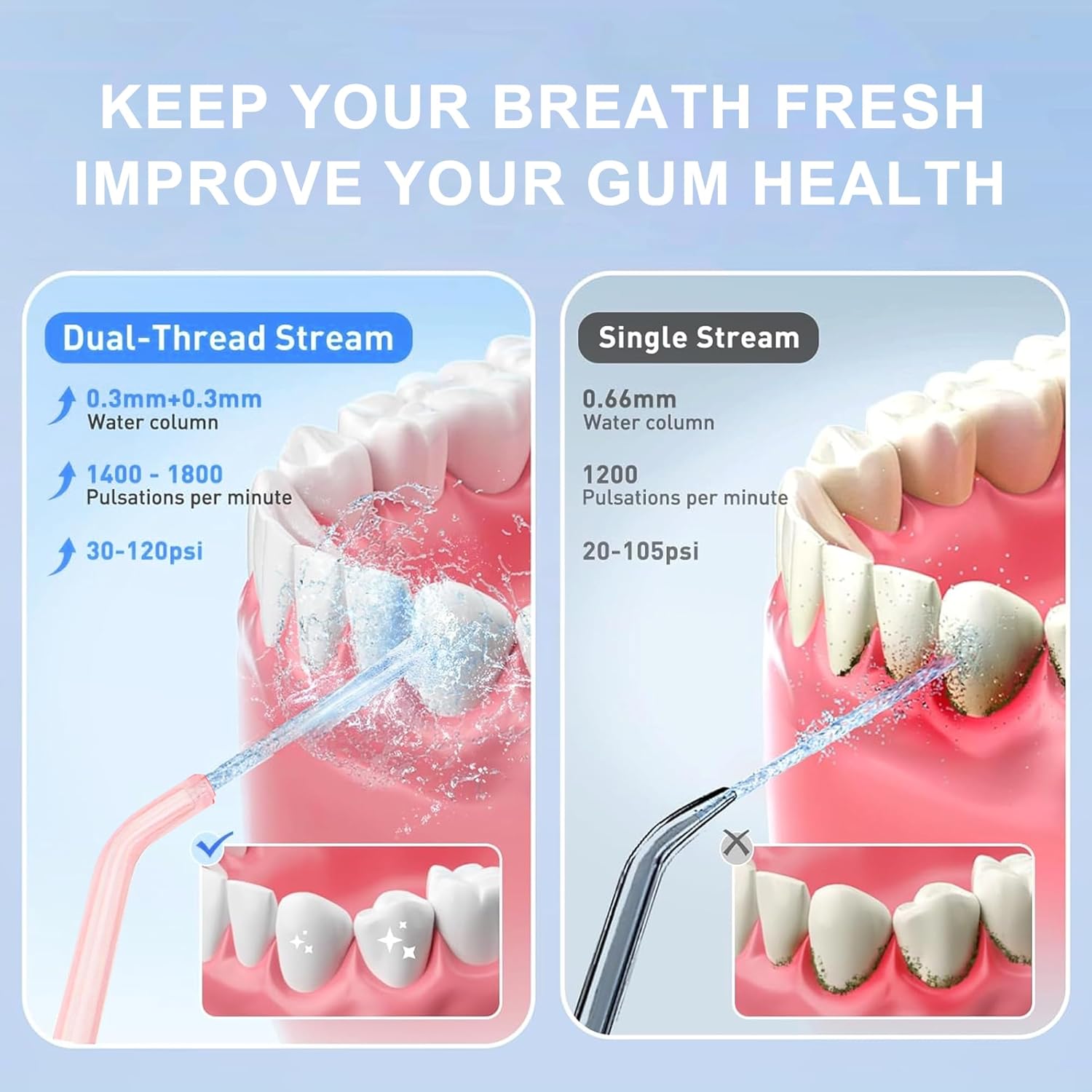 - 【Oral Hygiene】Make plaque removal a breeze. Ditch floss strings, opt for our hassle-free water flosser attachments for water pick.