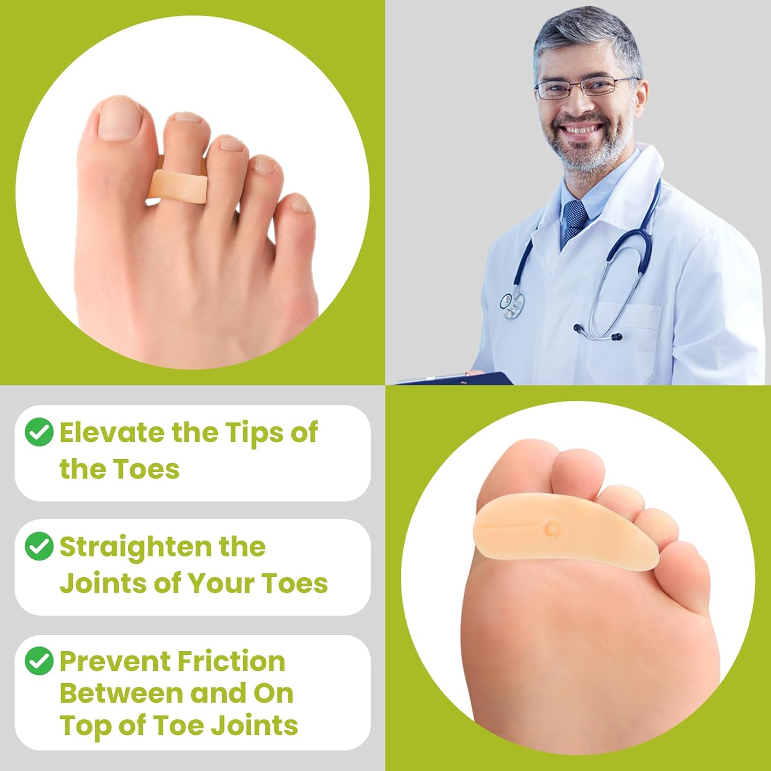 - Physician-Designed Durability - Our toe corrector are made of soft and flexible silicone gel to ensure long-lasting comfort, and our gel can be easily cleaned and reused as often as you need. Silicone and latex free for sensitive skin.