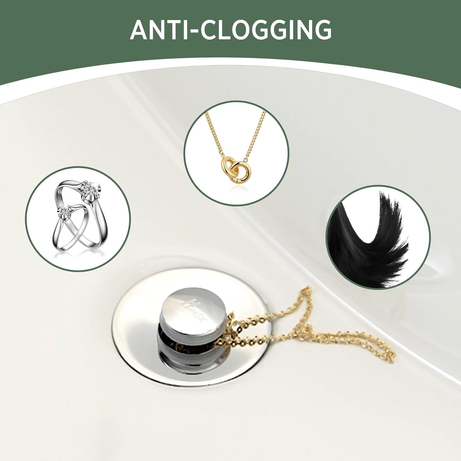 - Premium and Durable Construction - This bathroom sink stopper features thickened stainless steel with a smooth, polished chrome surface that is rust-resistant, effectively covering old, rusted drains. The durable brass pop-up bullet core is designed to last at least five years. With integrated rubber rings for a tight, leak-proof fit, this stopper combines durability and functionality for an ideal sink upgrade