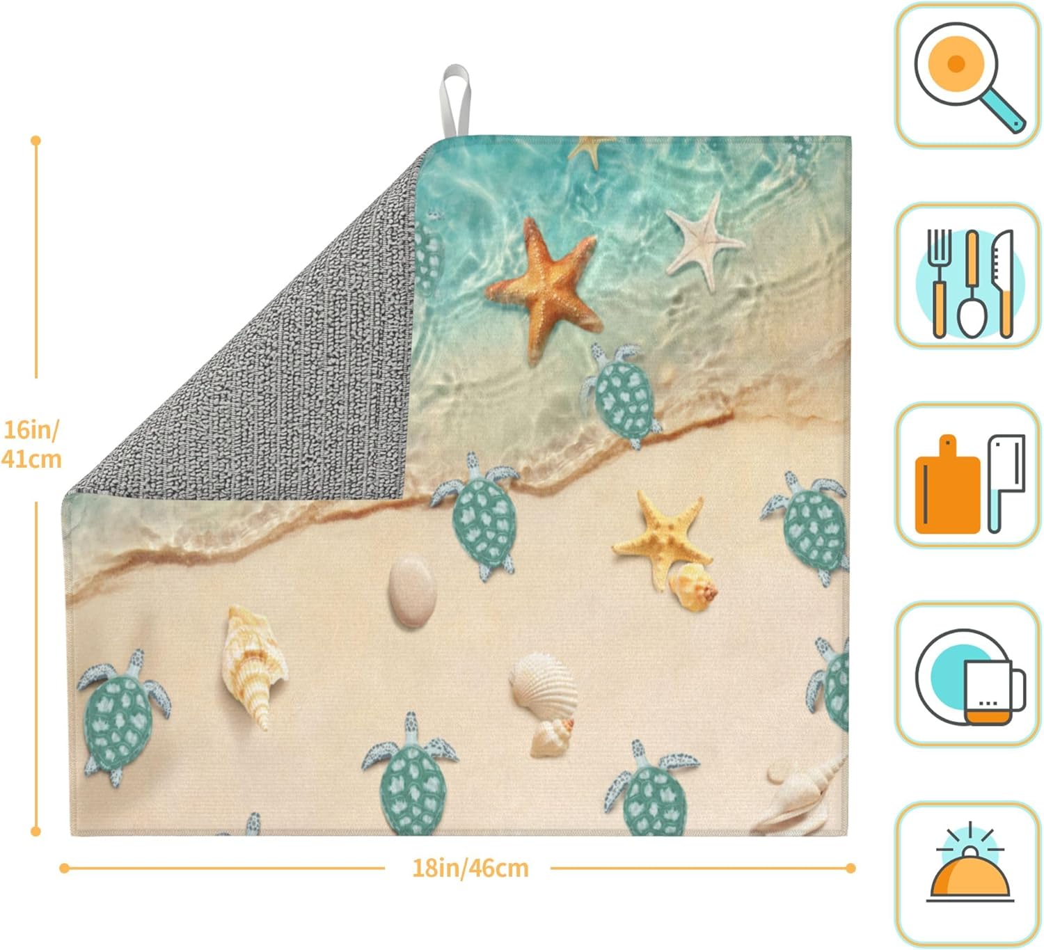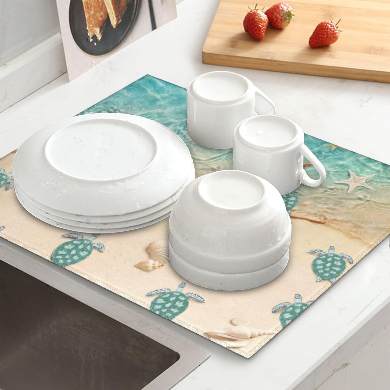 Sea Turtles Beach Dish Drying Mat for Kitchen Counter Washable Absorbent Reversible Microfiber Teal Nautical Decor Drying Pad Kitchen Accessories 16x18 Inch Yellow
