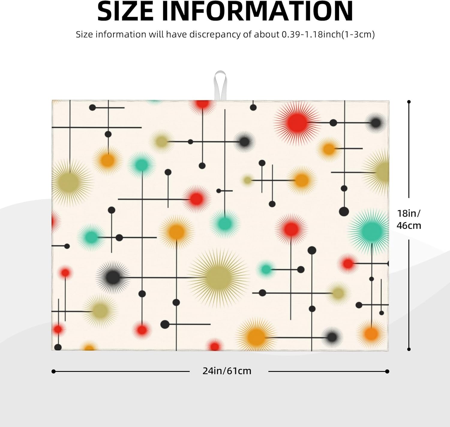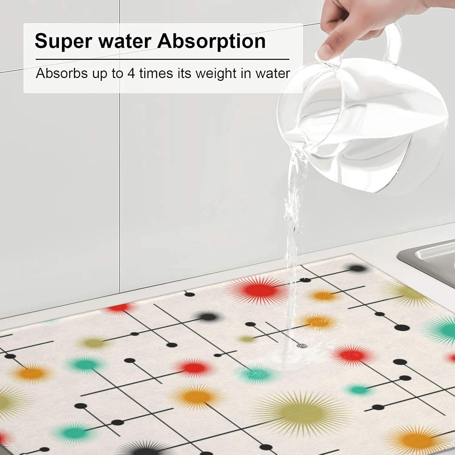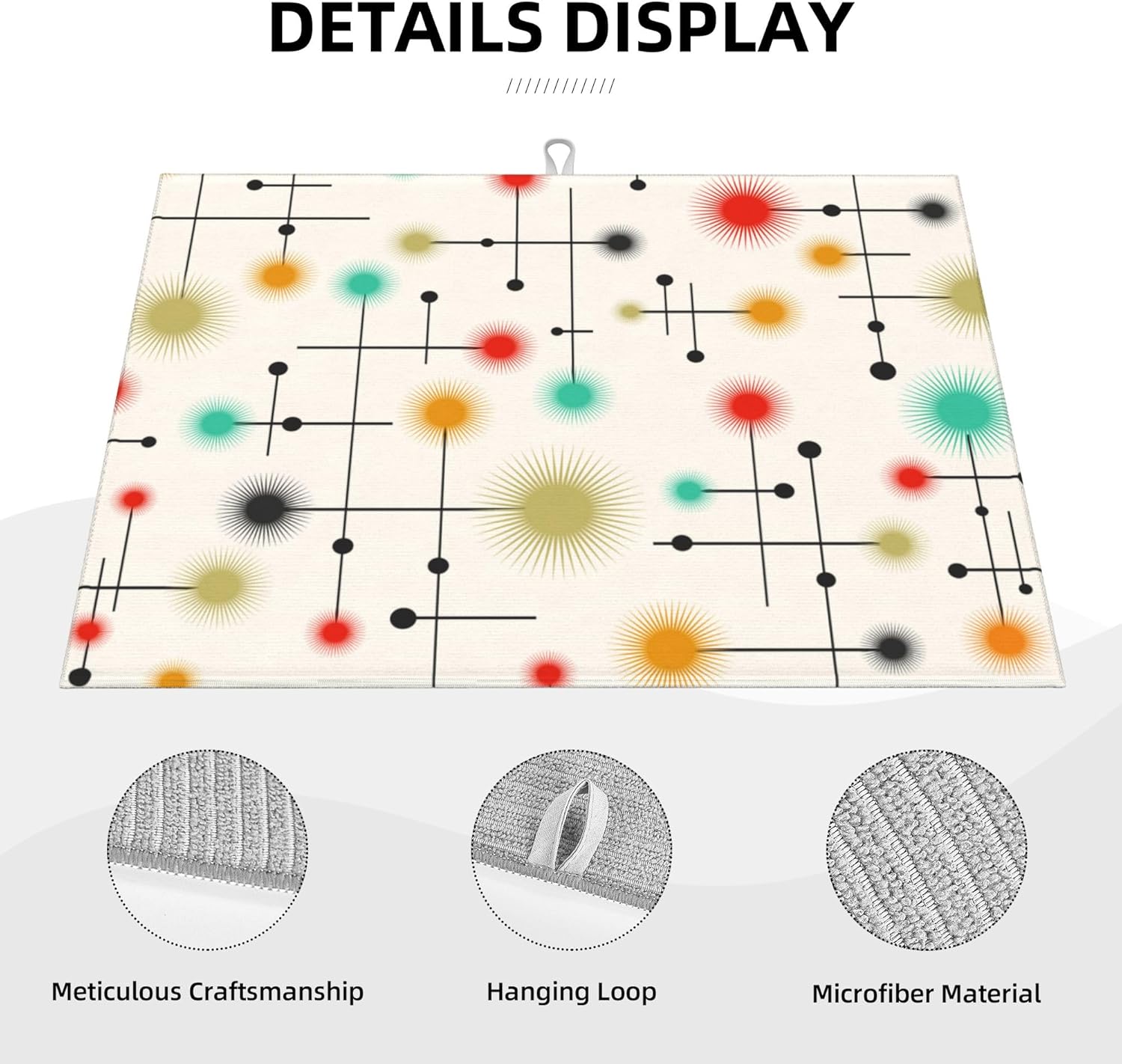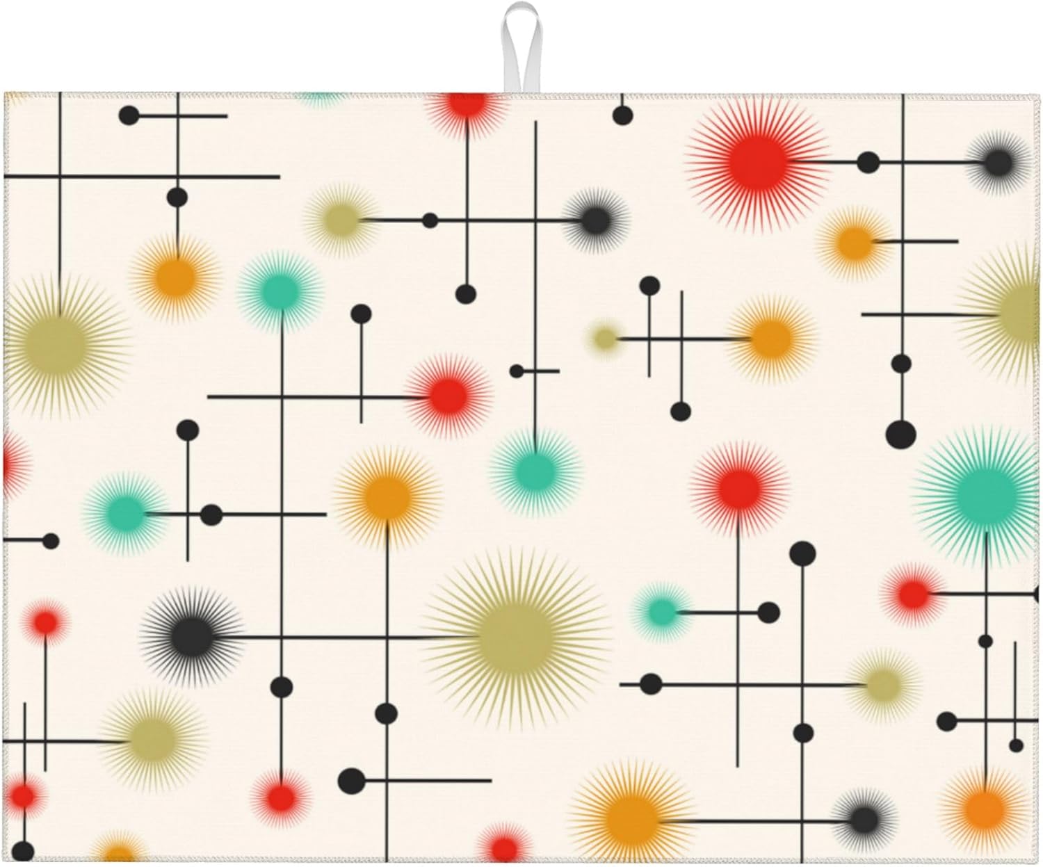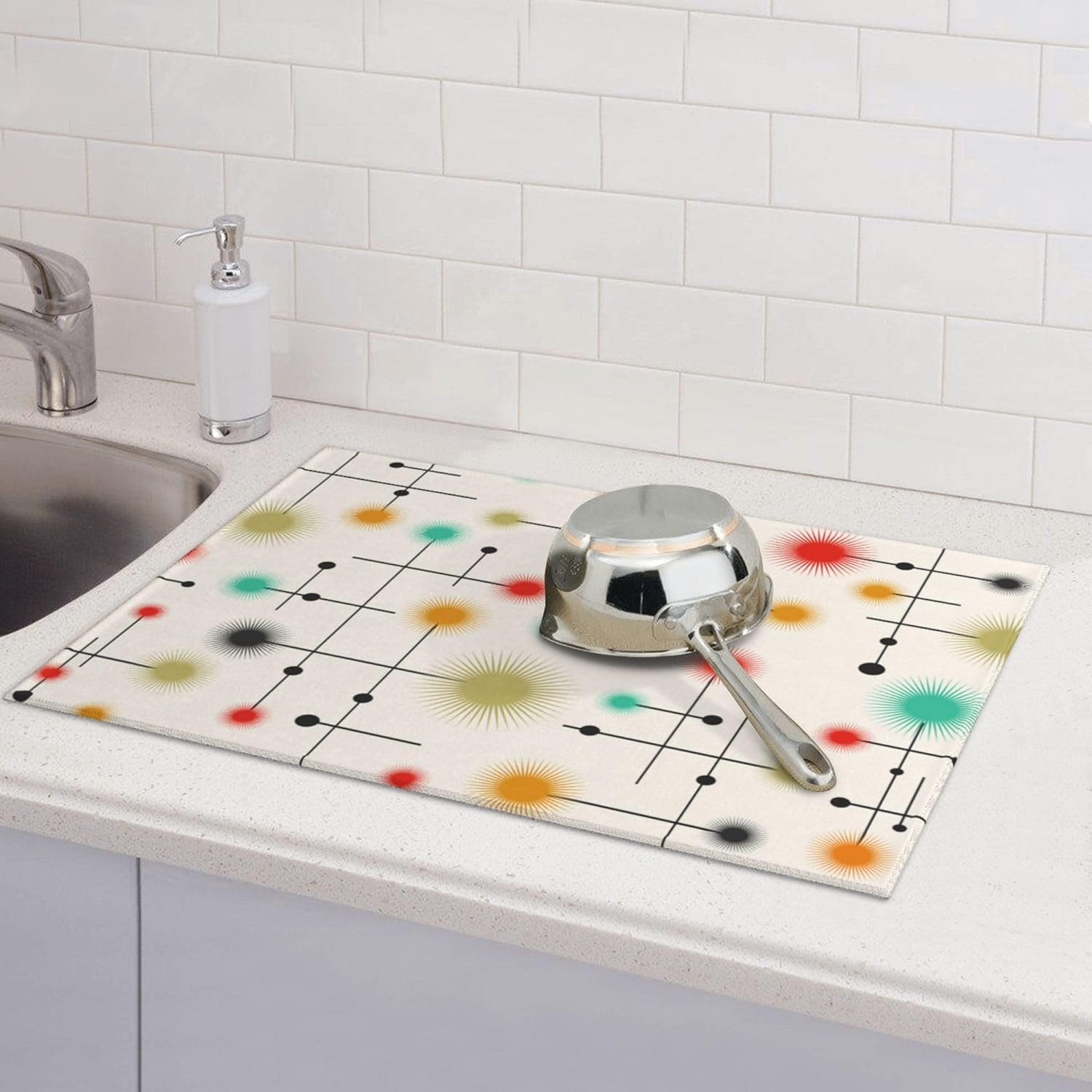 Mid Century Modern Dish Drying Mat for Kitchen Counter Abstract Modern Absorbent Reversible Atomic Retro Drying Pad Yellow Decor Dish Drainer Rack Mats 18"x24"
