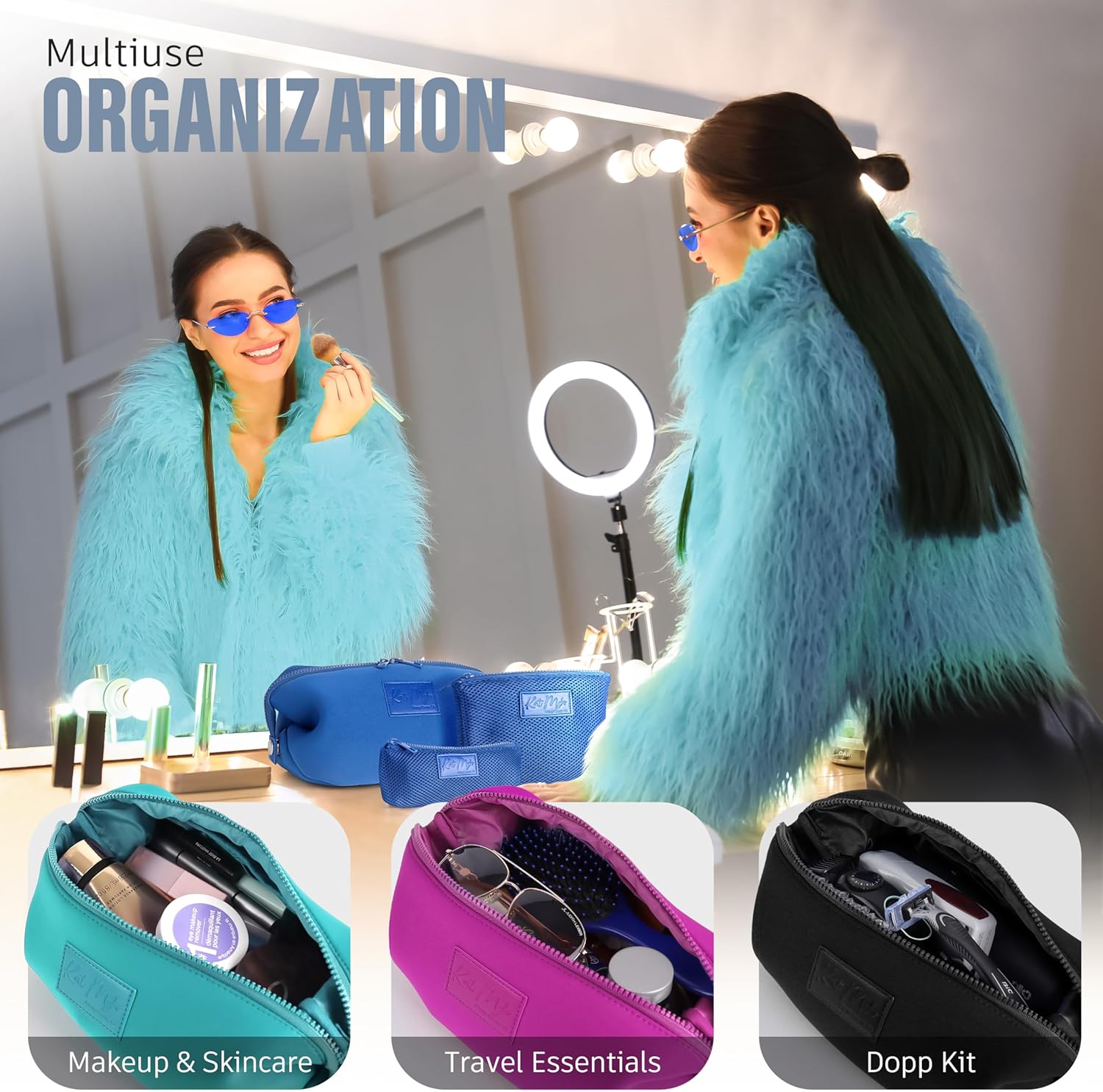 Kat Myhr Neoprene Washable Travel Makeup & Cosmetic Bag Set, 2 Air Mesh Pouches,100% Neoprene Toiletry Bag, Large Water Resistant Travel Bag for Toiletries, Makeup Cosmetic Travel Bag (Royal Blue)