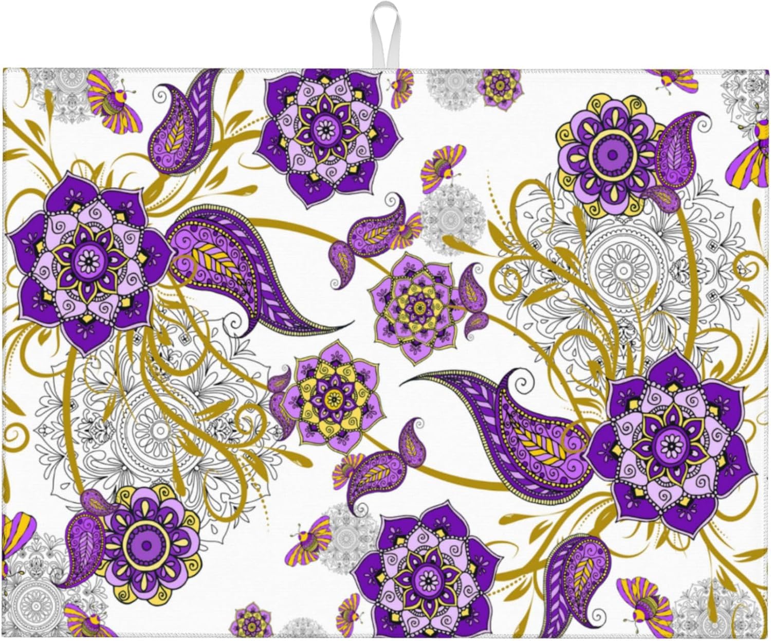 Purple Flower Kitchen Drying Mat Boho Floral Microfiber Dish Drainer Mat for Kitchen Counter Absorbent Reusable Washable 18x24 Inch Home Holiday Decor