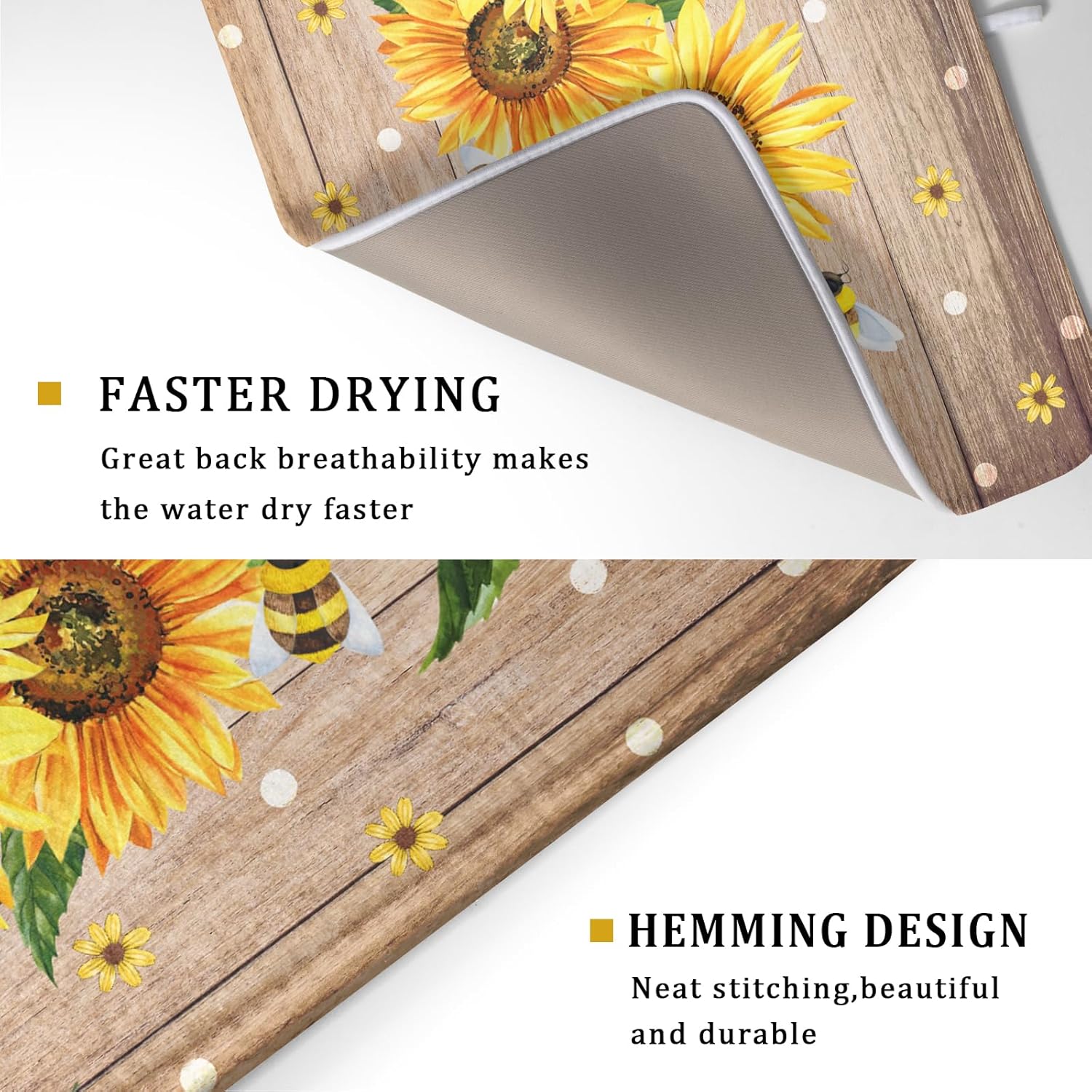 Sunflower Bee Dish Drying Mat for Kitchen Counter Home 18x24 Inch Wood Barn Microfiber Drainer Rack Mats Washable Absorbent Dish Dry Pad