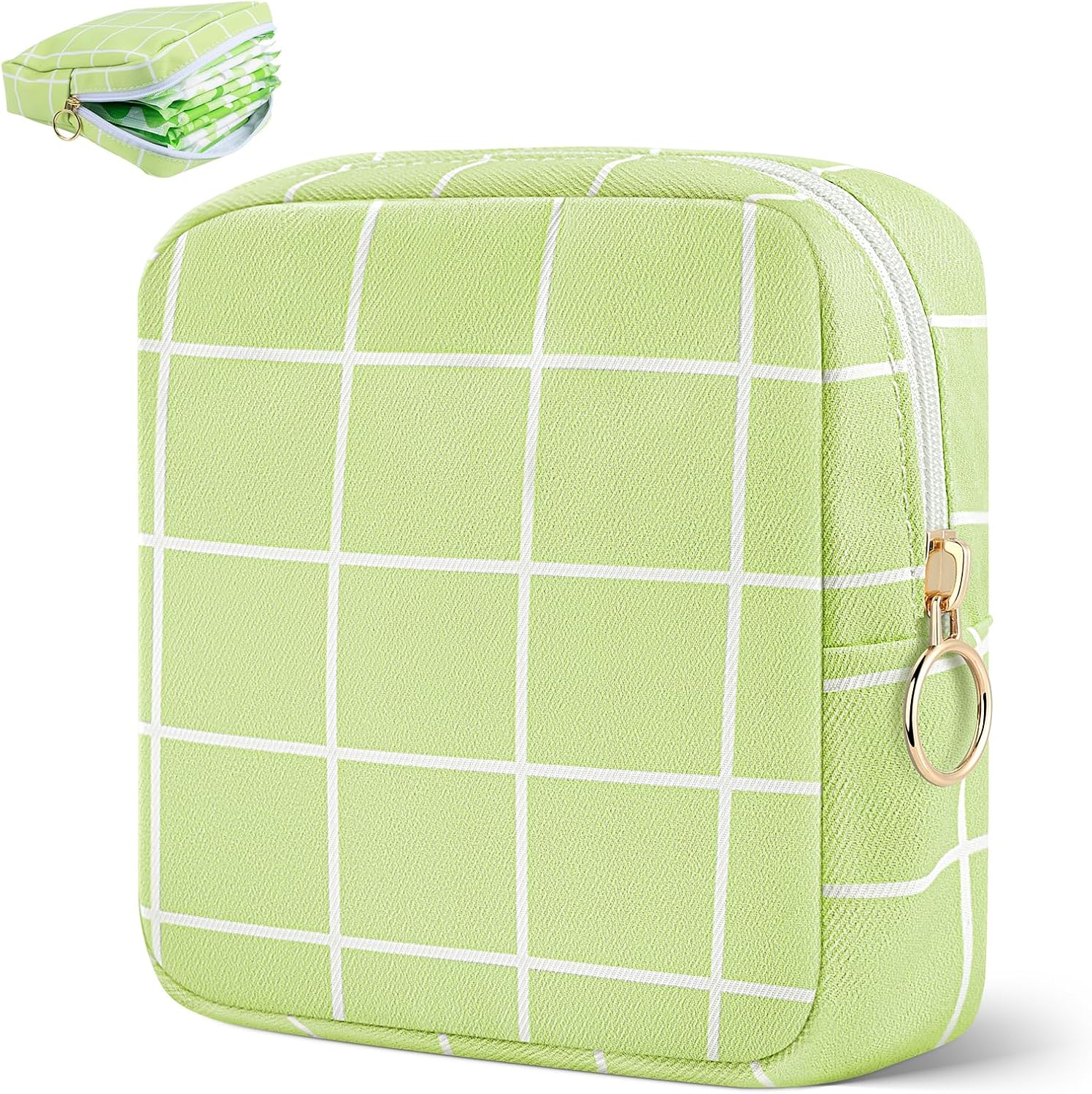 Desing Wish Period Bag Pouch Soft Cloth Sanitary Napkin Storage Bag Portable Menstrual Pad Pouches Tampon Holder for Purse First Period Kit for Girls 9-12 (Grass Green Plaid)