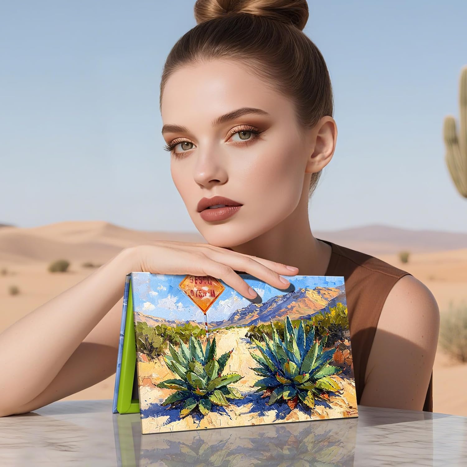 Magnetic Makeup Palette, Empty Eyeshadow Palette With Mirror Inside, Oil-Painting Embossed Design Art Paper Makeup Organizer DIY (Desert Star)