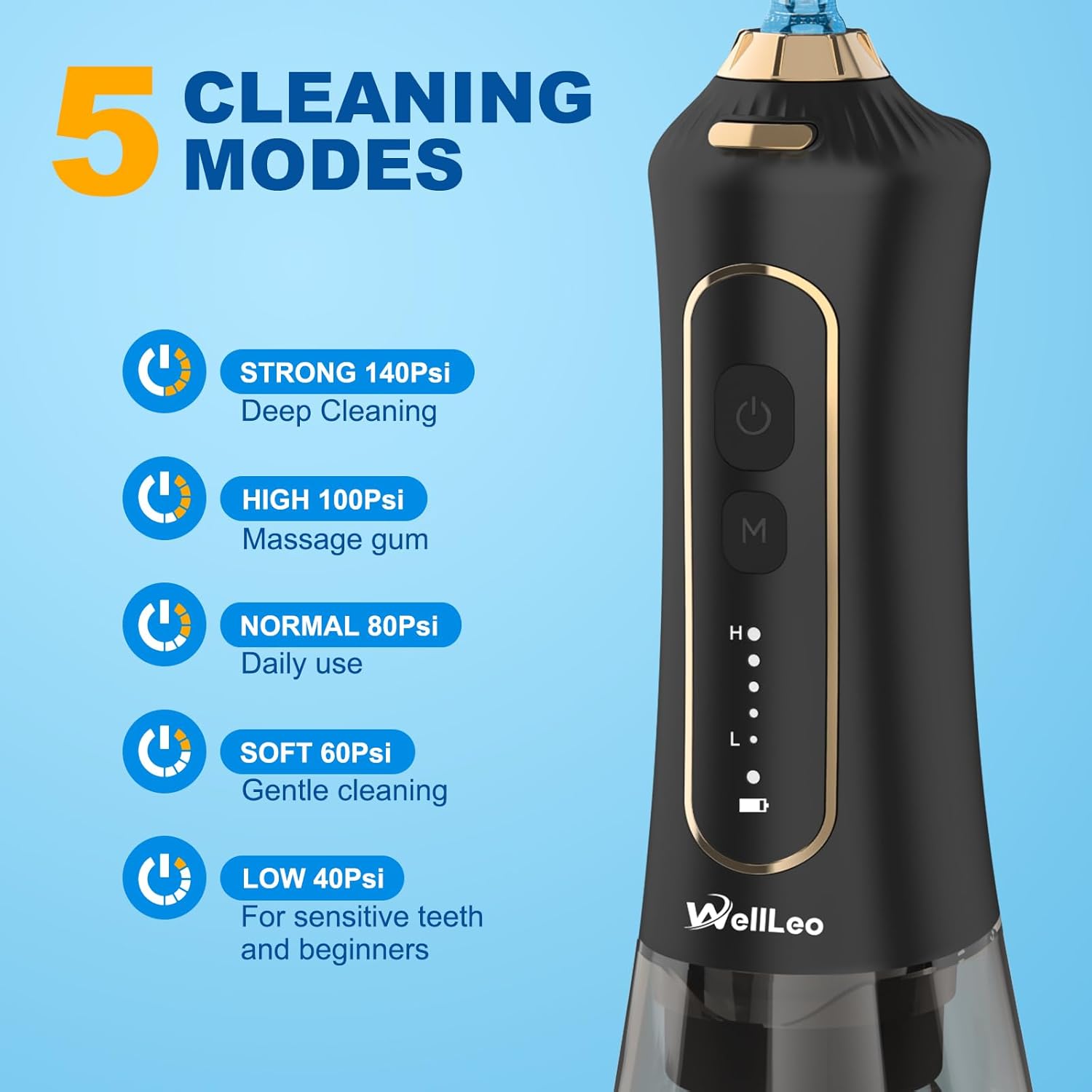 • Strong Pulsating Water Flow,Deep Cleaning-Dentist Recommended: The water flosser delivers 1300 pulses per minute to effectively remove stubborn debris and food particles from teeth and gums. With five adjustable cleaning modes, the tooth flosser caters to individual needs.Whether for first-time users, sensitive gums, or for those with braces, undergoing orthodontics, or needing deep periodontal cleaning, this is the ideal oral shower device endorsed by dentists