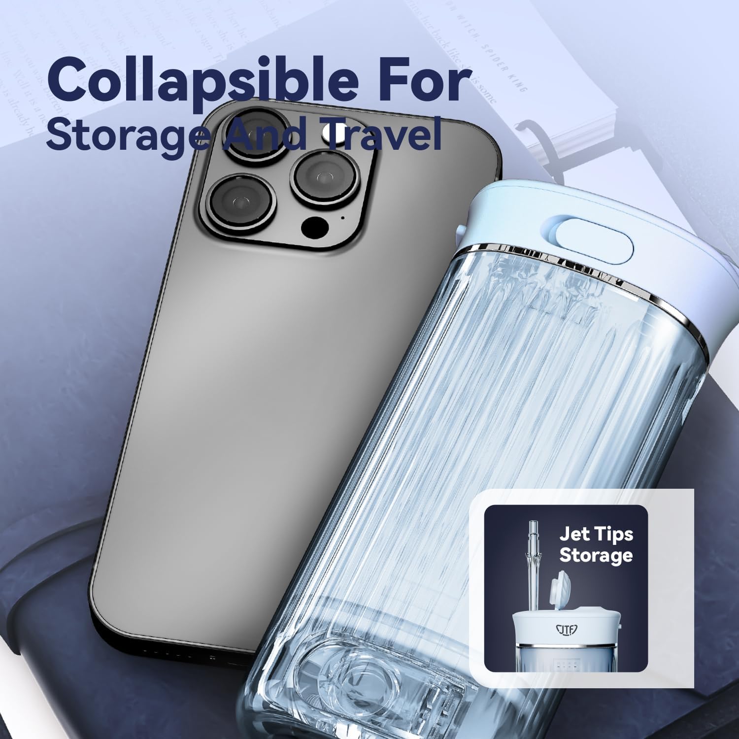 - 【𝐂𝐨𝐦𝐩𝐚𝐜𝐭 & 𝐏𝐨𝐫𝐭𝐚𝐛𝐥𝐞 𝐖𝐚𝐭𝐞𝐫 𝐅𝐥𝐨𝐬𝐬𝐞𝐫】JTF portable water flosser features one unique setting with telescopic technology to allows the device to collapse into a smaller size for easy storage in a bag or suitcase when traveling
