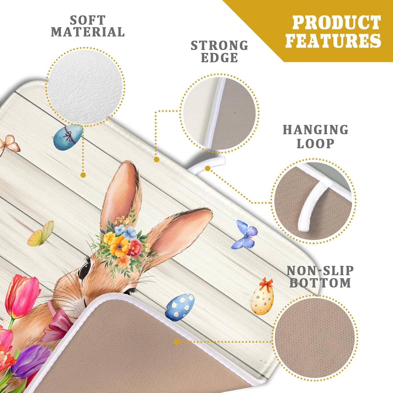 Easter Bunny Dish Drying Mat 16x18 inch Eggs Floral Fast Drying Pad Washable Reversible Microfiber Dish Drainer Mats for Kitchen Counter