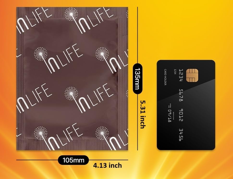 InLife Extra Size Super Warmer for Hands and Body, All Natural & Safe, Bigger & Wider Area Covered, Higher Heating 145°F, Air Activated, Easy & Comfort, Steady Longer Lasting, Odorless, 30 Packs