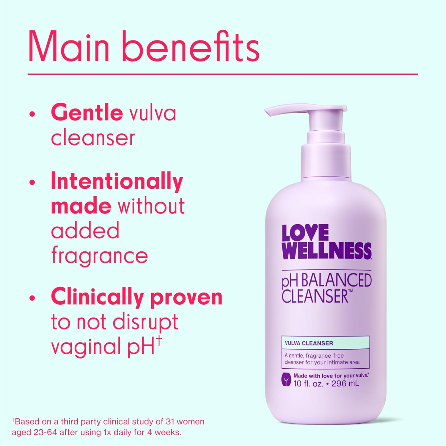 Love Wellness pH Balancing Cleanser | Feminine Vulva Wash for Intimate Health & Hygiene | Fragrance-Free, Non-Irritating & pH Matched | With Aloe Vera & Calendula for Sensitive Skin | 10 Fl Oz