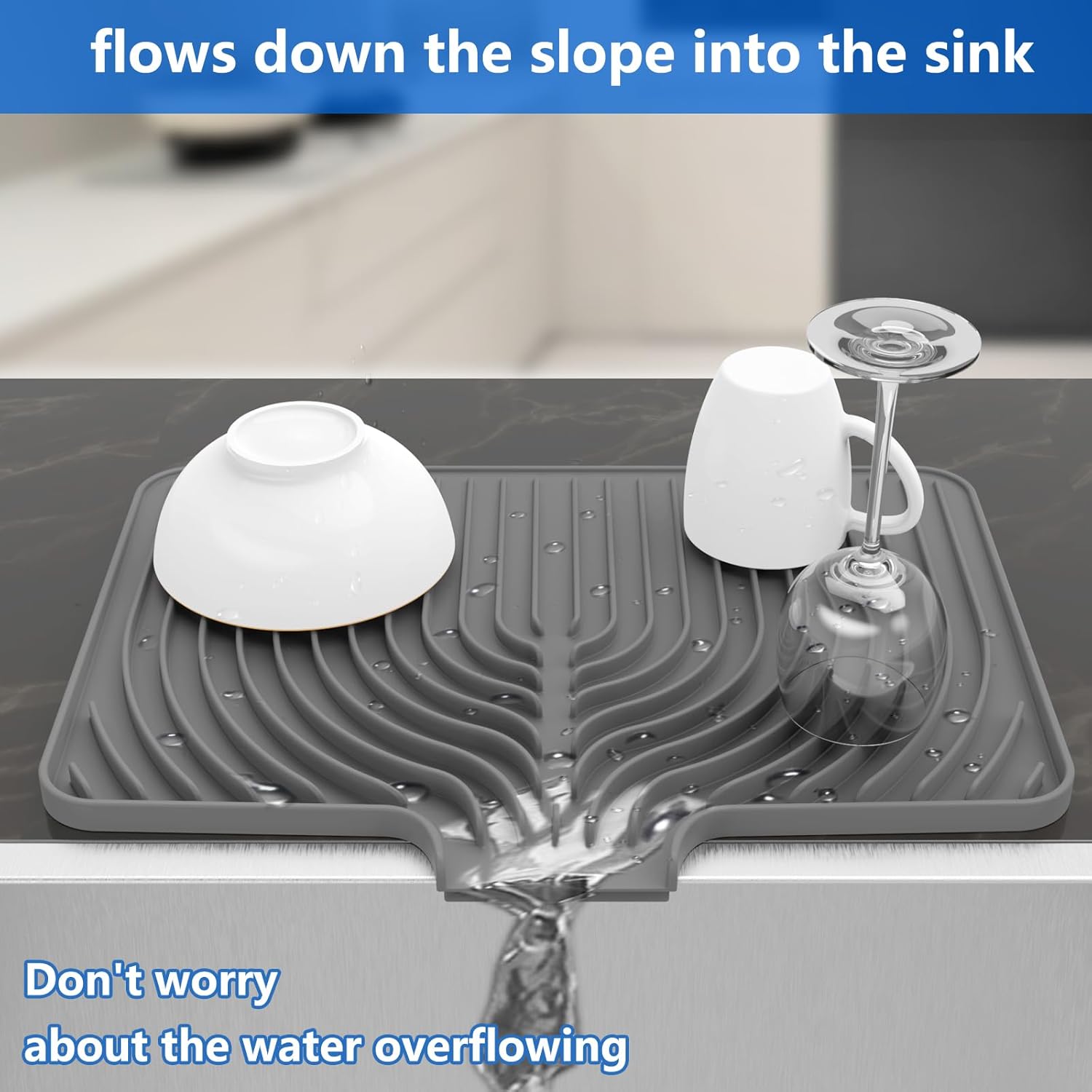 Dish Drying Matt for Kitchen Counter,18"×12"Silicone Dry Rack Mat with Built in Drain, Kitchen Dry Mats for Dishes Drying Pad for Counter(gray)