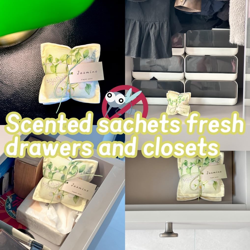 - Hand-Made Sachets: Jasmine bags are carefully handcrafted by breathable cotton, ensuring aroma to fully permeate drawers and closets, yet, won't dye or harm the outfits like paper sachets packets, add pleasing flavor to bedroom and dress room, fresheners for clothes.
