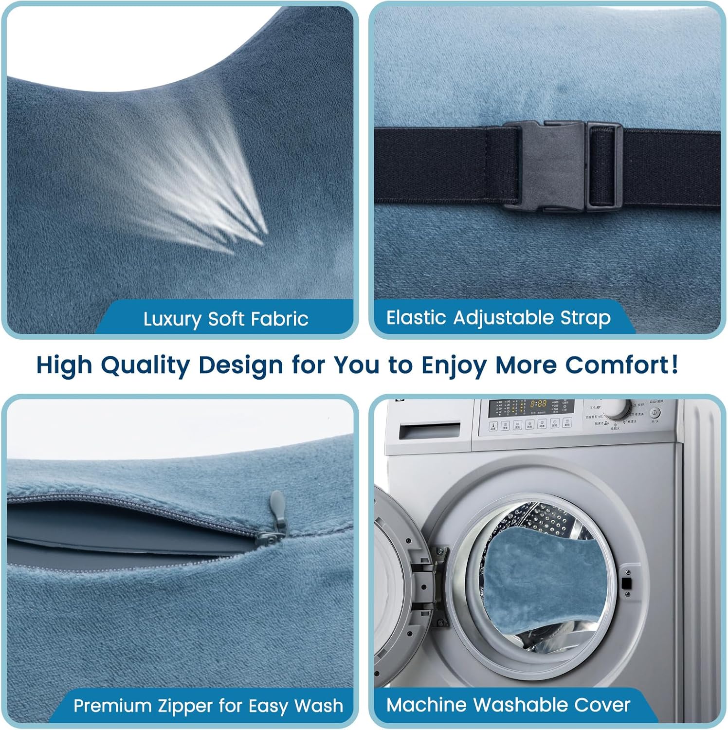 - WASHABLE COVER : Luxury fabric that is comfortable ,As soft ans baby skin ,pillow cover is removal and machine washable, Inflatable car seat neck support pillows can be easily inflated and deflated , making them more portable than bulky memory foam car neck pillows.