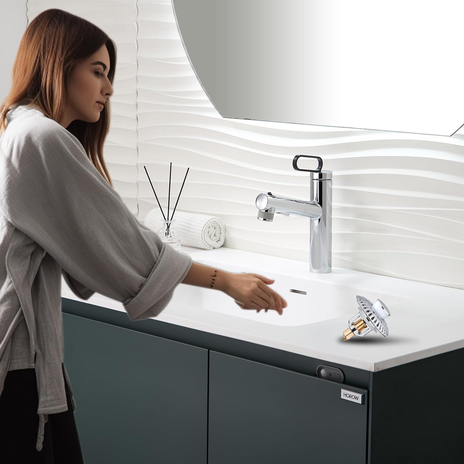- Upgrade with 2-in-1 Functionality: This bathroom sink drain stopper a pop-up button for both draining and holding water—press to store water, lift to drain. The upgraded hair catcher on top makes it easier to clean hair and debris, effectively preventing clogs and improving your daily cleaning routine.