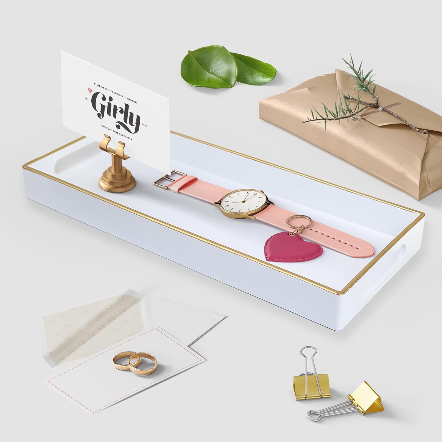 - Versatile & Practical Design: This 13.7" x 6" x 1.4" rectangular vanity tray is perfect for organizing small items in your bathroom, desk, kitchen, or entryway, keeping your space neat and clutter-free. Ideal for perfumes, toiletries, jewelry, and office supplies.