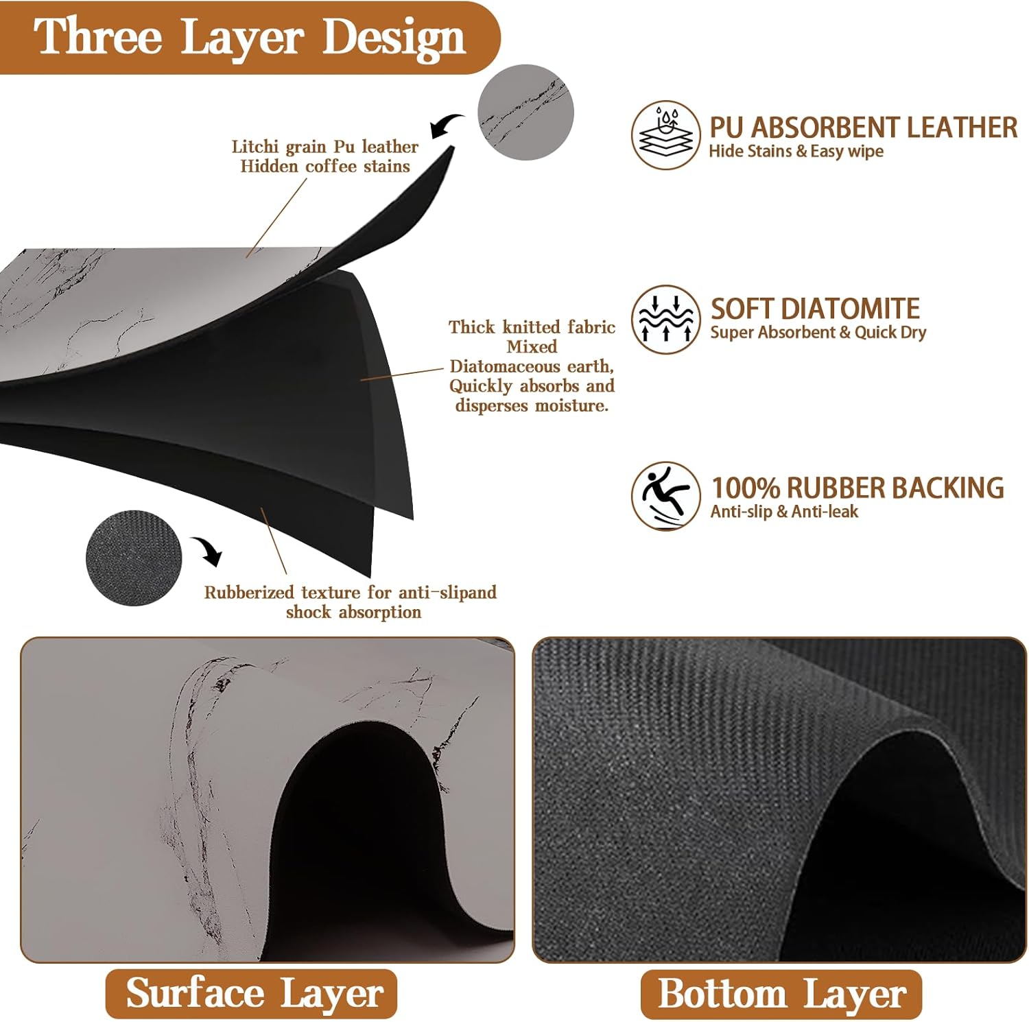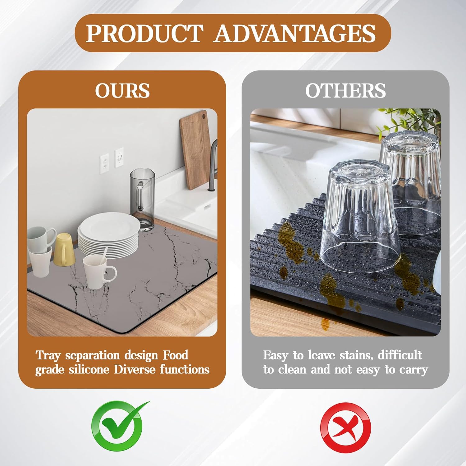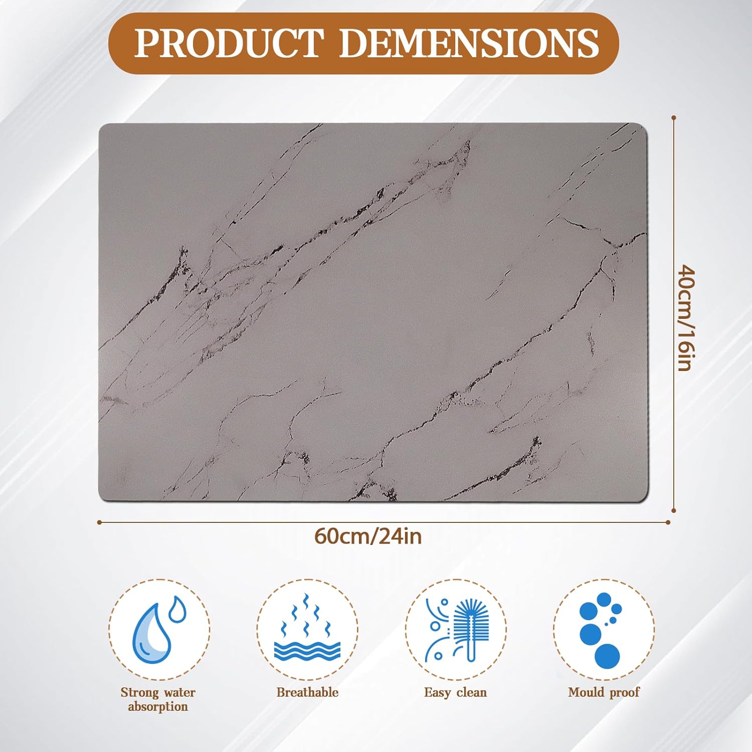 - 【Slip-Proof & Durable】The dish rack mat features a sturdy non-slip rubber base that ensures stability on any surface, even when wet. Put household items on the anti slip marble drying mat dishes and the non-slip bottom will be adsorbed on the table to prevent them from moving. Paired with its sophisticated marble-patterned surface, it not only reduces the risk of accidents in your kitchen but also adds a touch of elegance to your kitchen decor.