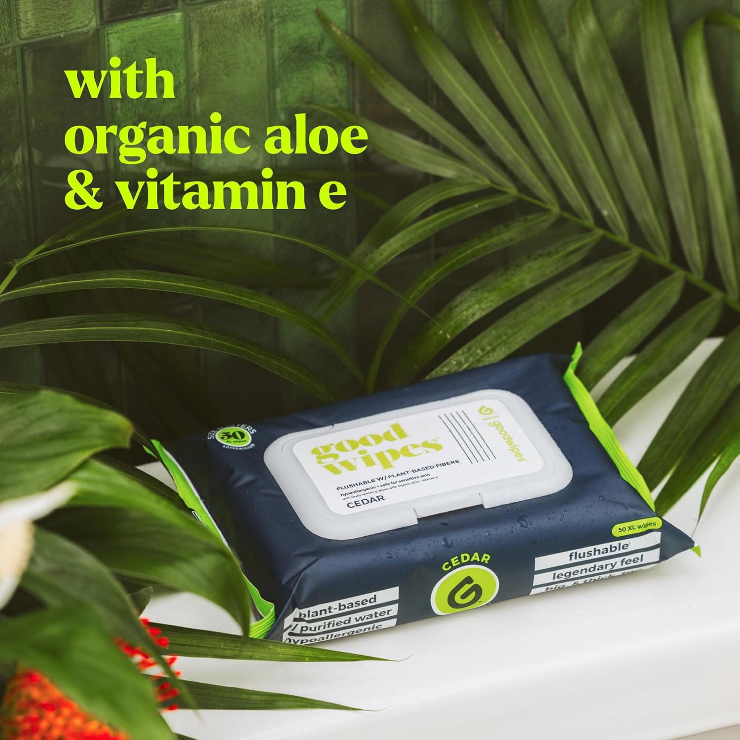 goodwipes Flushable Butt Wipes - Vitamin E & Aloe - Sewer & Septic Safe - Extra Large Adult Wet Wipes For Women & Men - Bathroom Essentials - Cedar, 418 Count (8 Packs + 1 Travel)