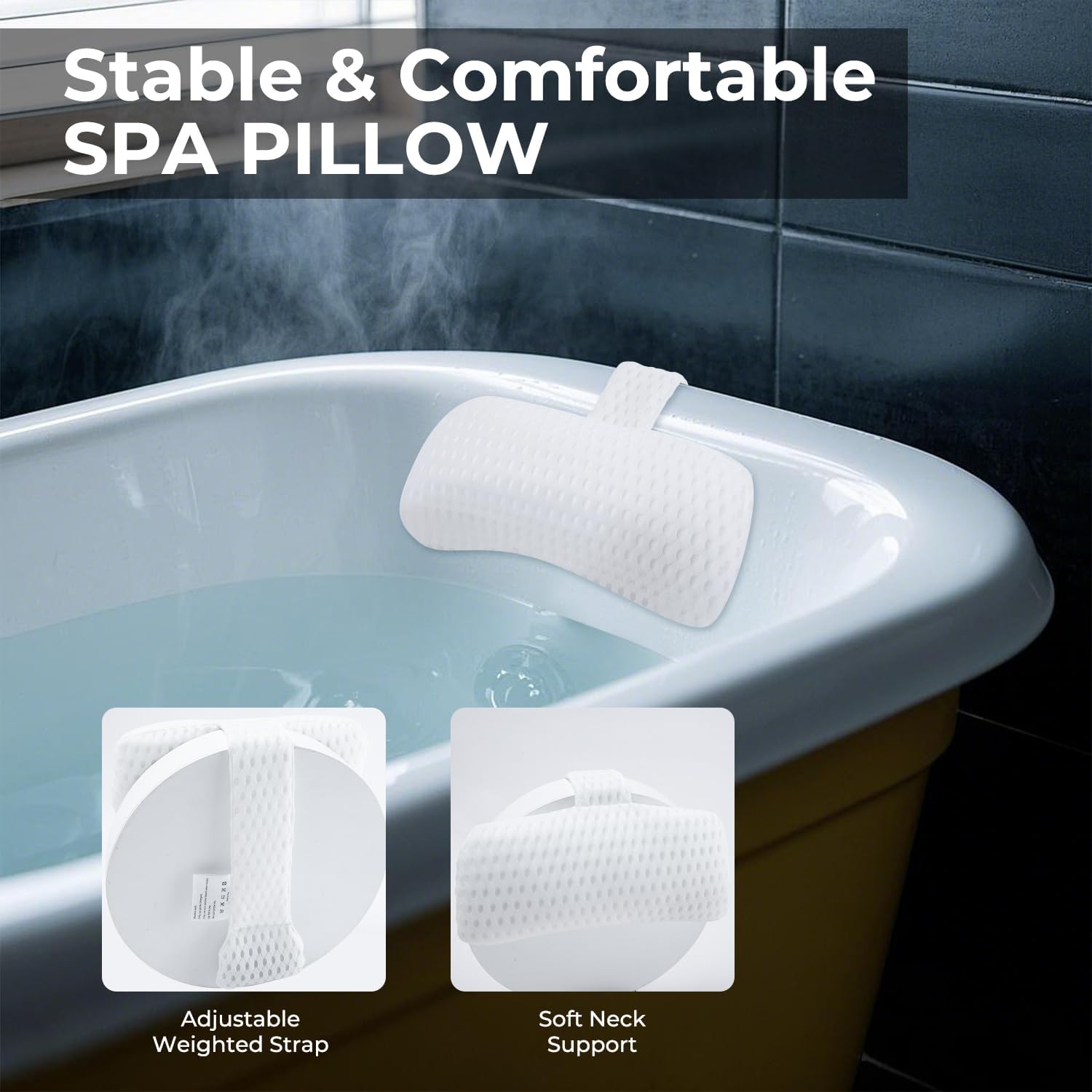 - Quick Drying: Featuring a breathable mesh cover, our tub pillow promotes airflow and dries quickly. Enjoy a clean and fresh pillow that’s always ready for your next spa