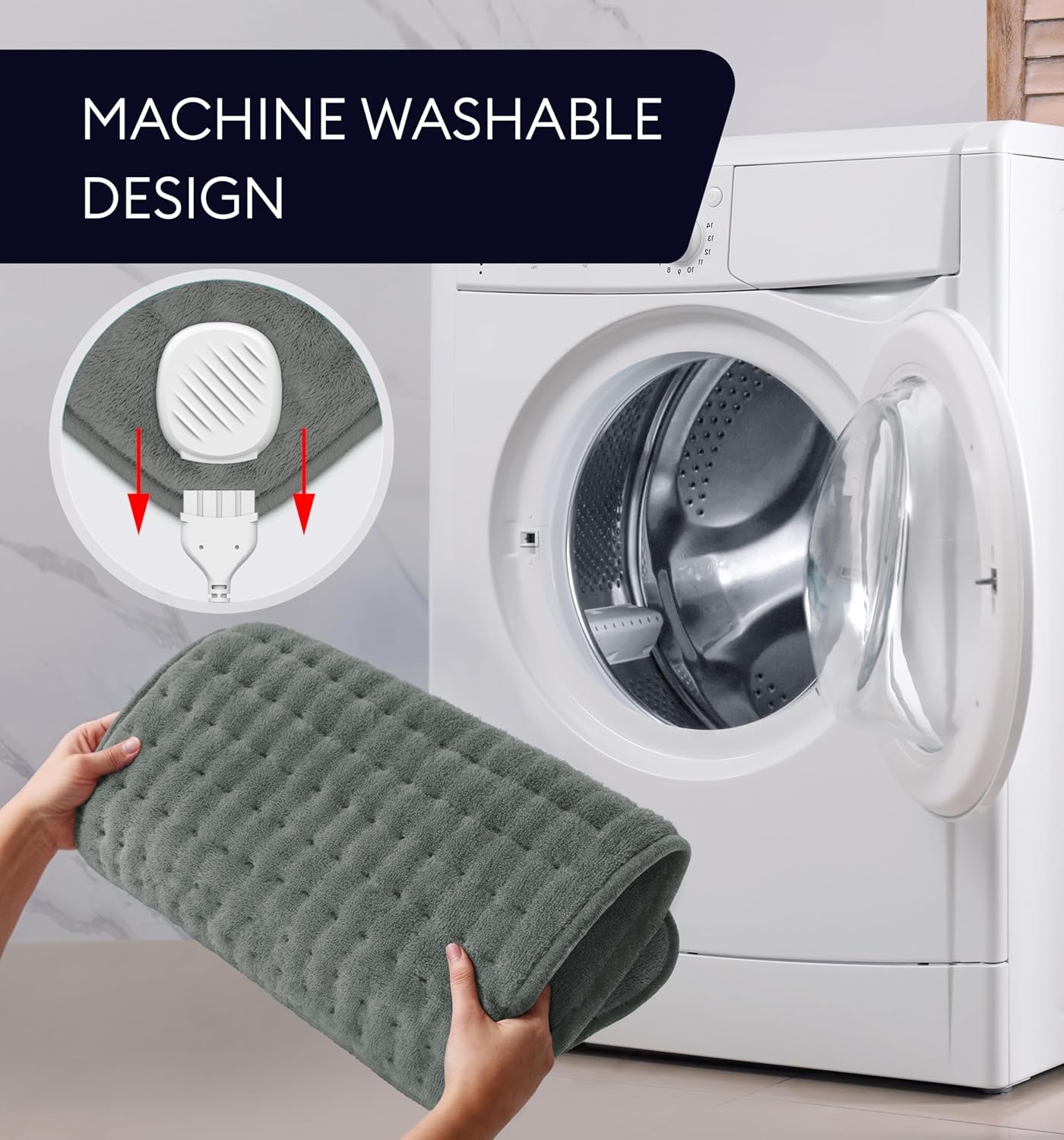- 𝐄𝐀𝐒𝐘 𝐌𝐀𝐈𝐍𝐓𝐄𝐍𝐀𝐍𝐂𝐄: Super easy to clean, our heating pad for bed is machine washable. Simply unplug and toss right in for a thorough cleansing before next use! You can also spot clean using a damp washcloth with mild detergent. Sanitizing has never been easier! The heating pad auto shut-off ensures your peace of mind after each use. No need to worry about forgetting to unplug.