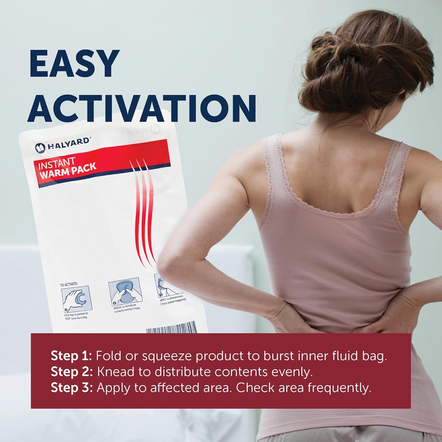 - PACKS: HALYARD Instant Warm Packs (51789) 4 inch x 9 inch (4”x 9”) and 24 packs come in a case.