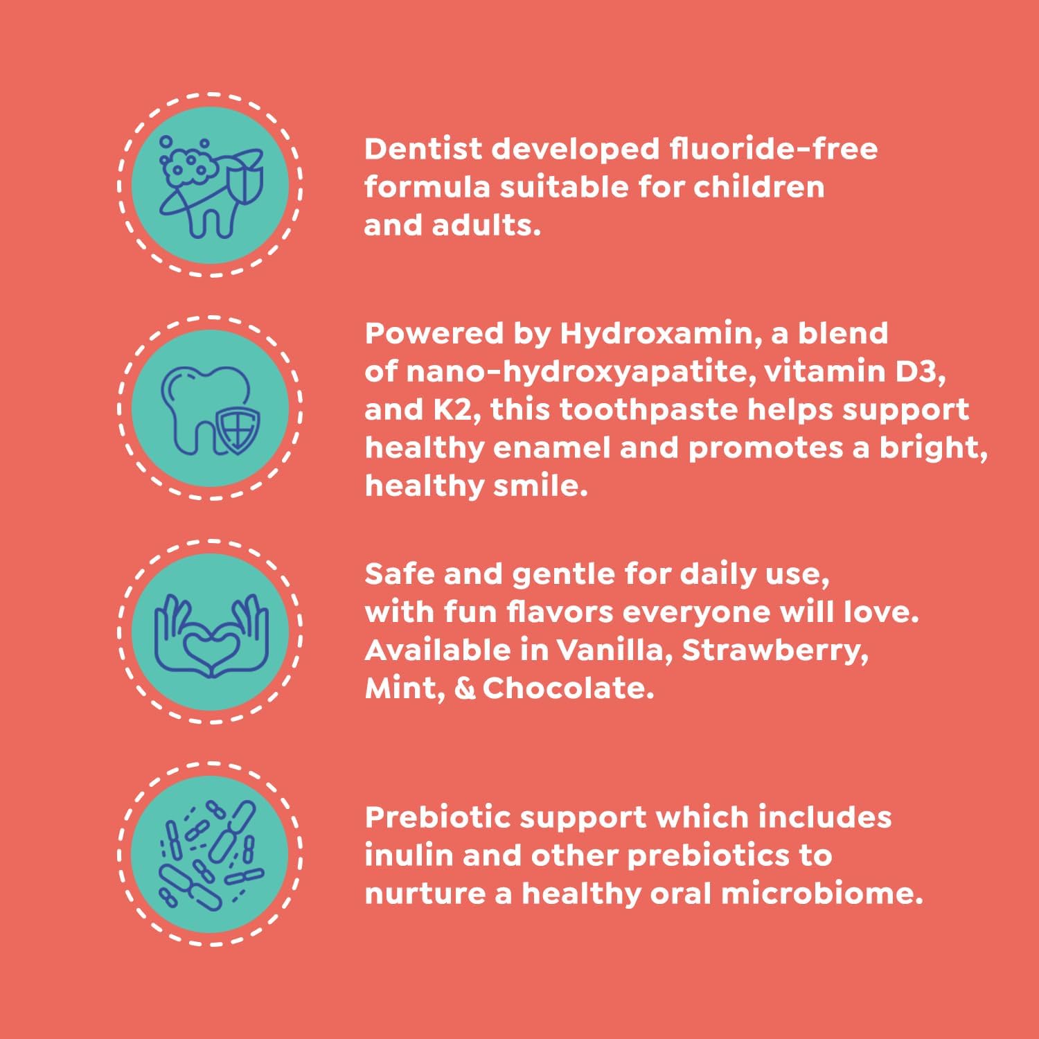 Nano Hydroxyapatite Toothpaste – Fluoride-Free, Remineralizing, Vitamins D3 & K2, Eases Sensitivity, Whitens, Dentist-Developed, Clean Ingredients, Adults & Kids, 4 Flavors