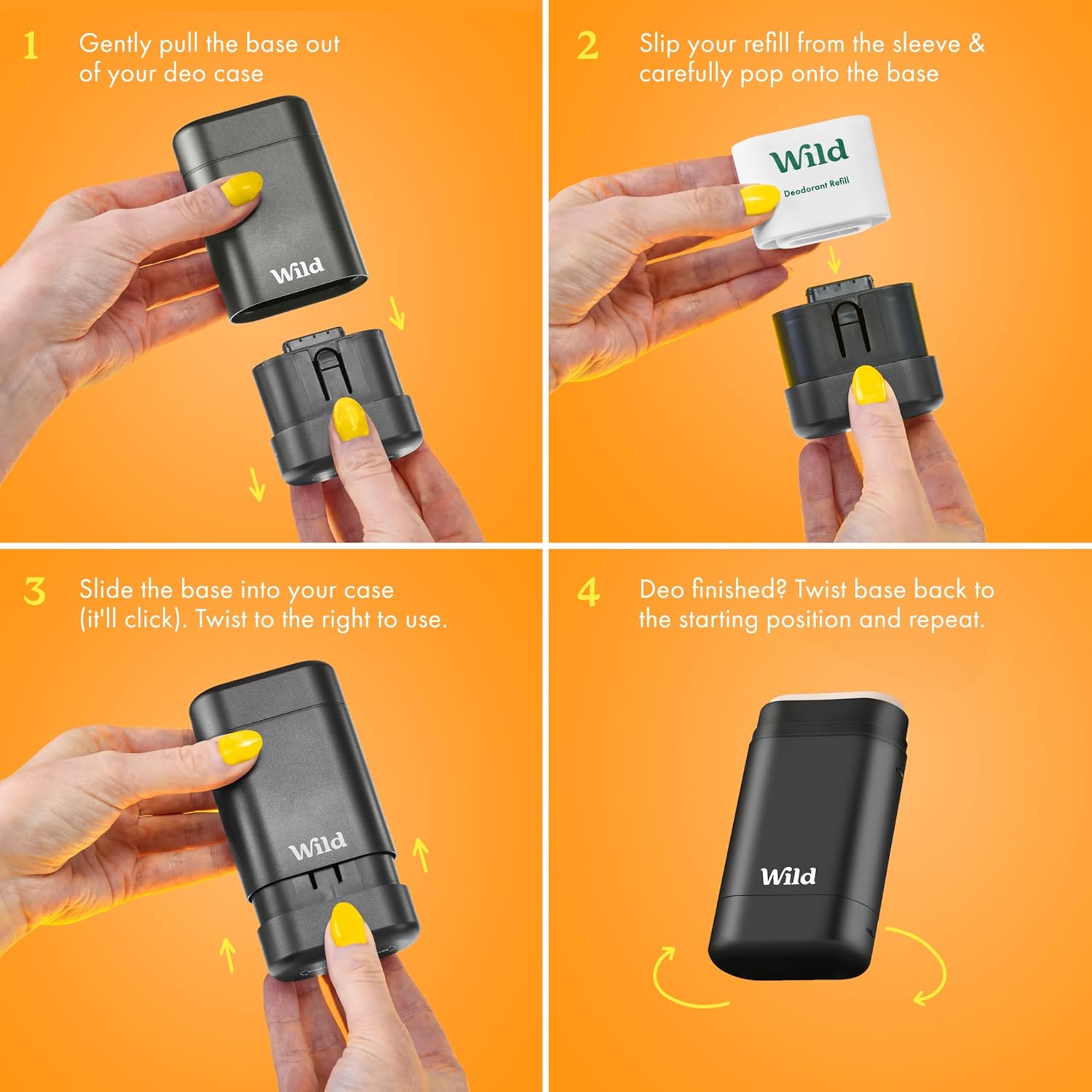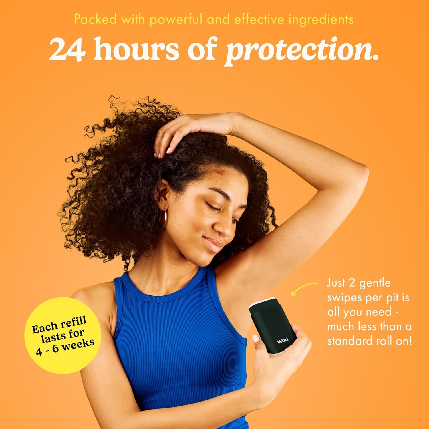 Wild - The Full Monty Starter Kit - Black Case with Refills in a Variety of Fresh Scents 5 x 1.4oz - Refillable Deodorant & Aluminum Free - Long Lasting Protection - Vegan