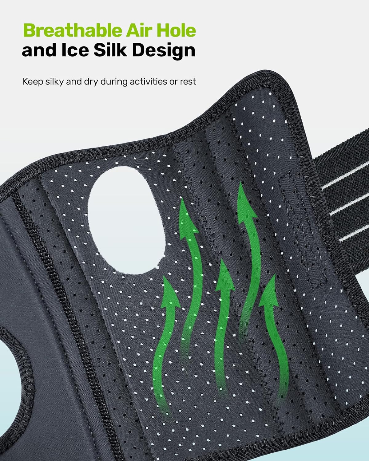- Breathable Mesh & Cooling Ice-Silk Material: More than 150,000 3D mesh holes per square meter in the left hand wrist brace. The wrist contact surface is made of ice silk material, which is comfortable and not stuffy, and can keep the left hand wrist brace dry when the hand moves.