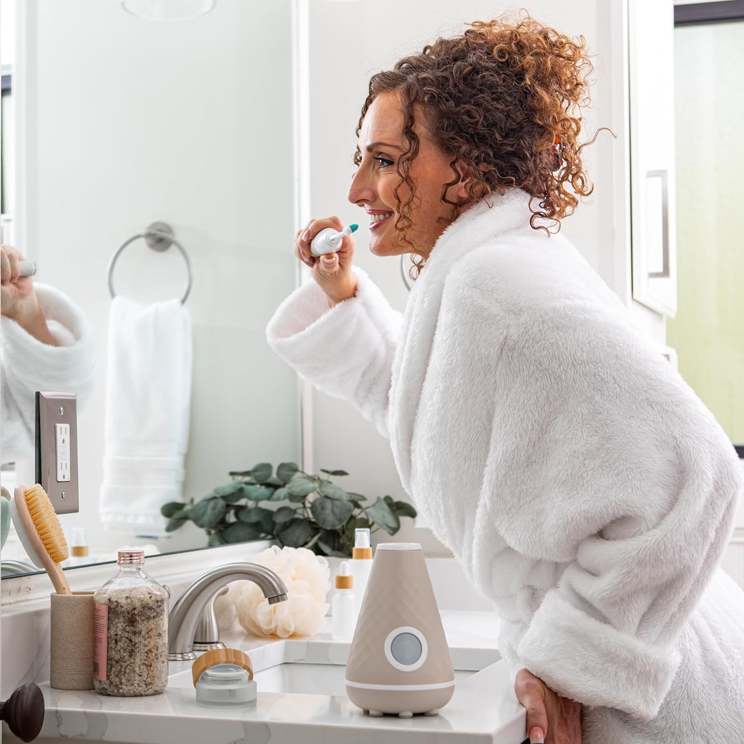 TAO Clean UV Sanitizing Sonic Toothbrush and Cleaning Station, Electric Toothbrush, Dual Speed Setting, Sandstone