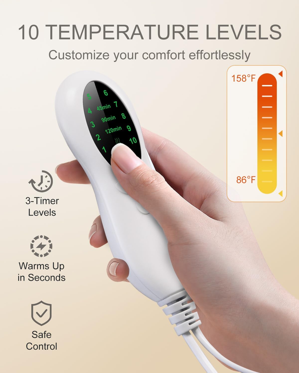- Multiple Heat and Timer Levels: Menstrual heating pad features 10 temperature settings (86℉-158℉) and 3 timer options (45/90/120 mins) to meet your different needs. With upgraded fast heating technology, it can quickly reach the treatment temperature and immediately relax muscles. It's truly an ideal relaxation gifts for women men to help them relieve fatigue after a day work.