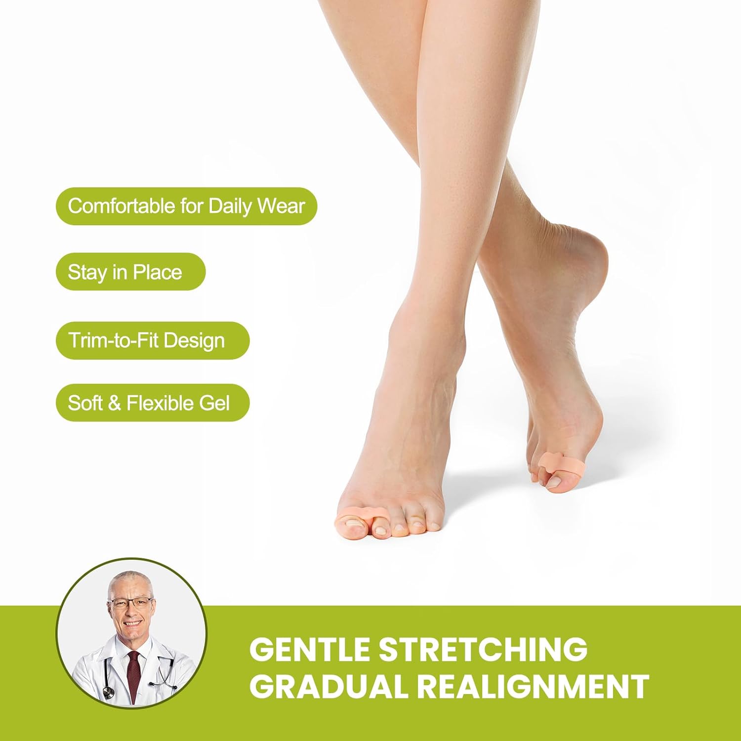 - How to Use - Simply put two loops on your big toe and second toe, very soft and comfortable to protect your toes, and this toe spacers is washable and reusable. Bunion corrector for women & men