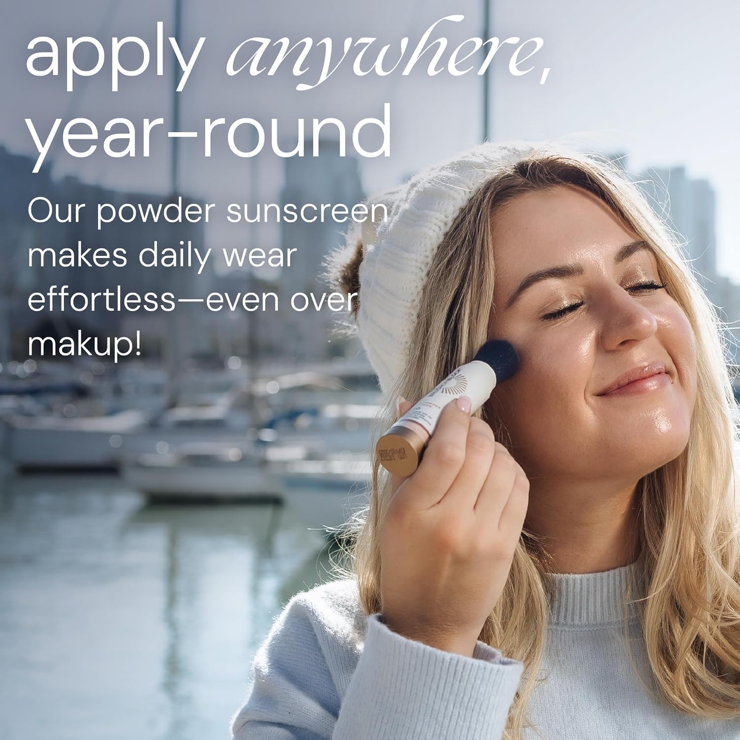 - EASY-TO-USE POWDER SUNSCREEN: A portable, self-dispensing brush containing mineral sunblock. The twist-open feature protects your bag while the SPF 50 mineral powder protects your face from harmful rays without the messy, greasy white residue of regular sunscreen