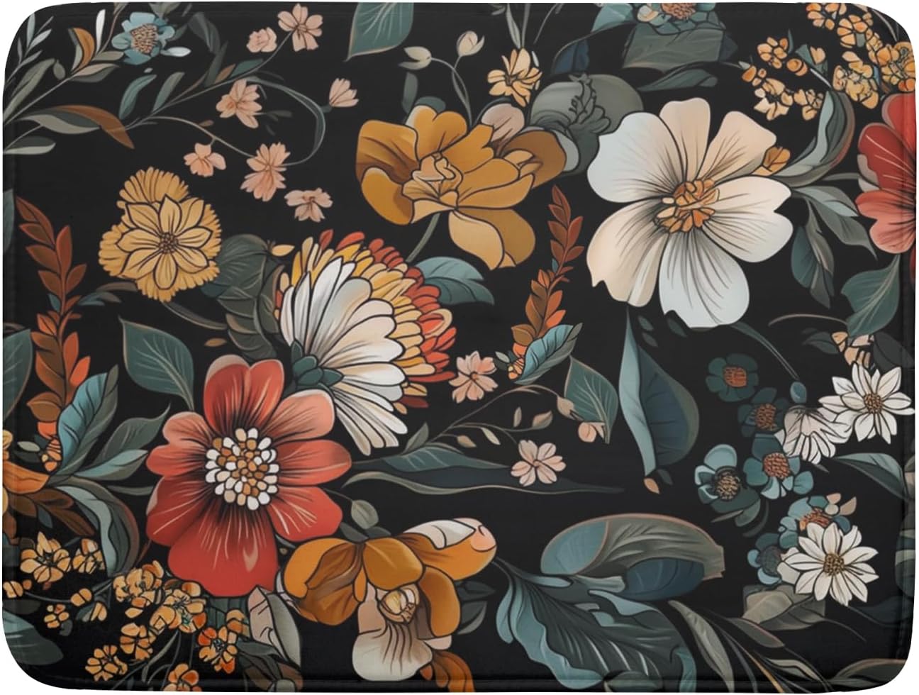 Vintage Floral Dish Drying Mat 18x24 inch Boho Flower Drainer Mats Fast Dry Absorbent Washable Dish Rack Pad Protector Kitchen Accessories