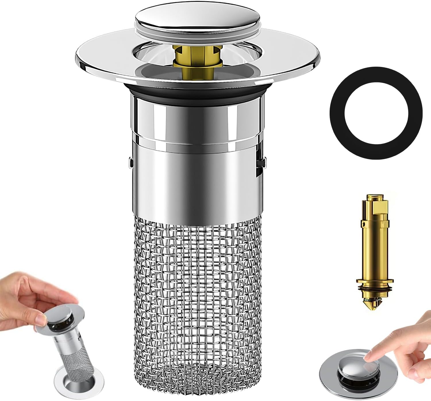 - 【Sleek, Modern Aesthetics】The Stainless Steel Pop-Up Sink Drain Strainer Hair Catcher is not only functional, but also stylish, with a sleek design that complements any kitchen or bathroom decor. Upgrade your space with this practical solution that blends seamlessly into your home while providing the necessary drainage support
