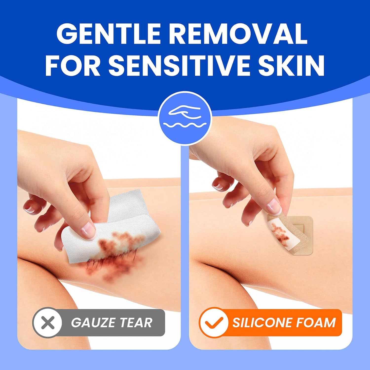 - Pain-Free Removal: Made with gentle silicone foam, our bandage removes easily without tearing skin or wound, ensuring a pain-free experience during removal