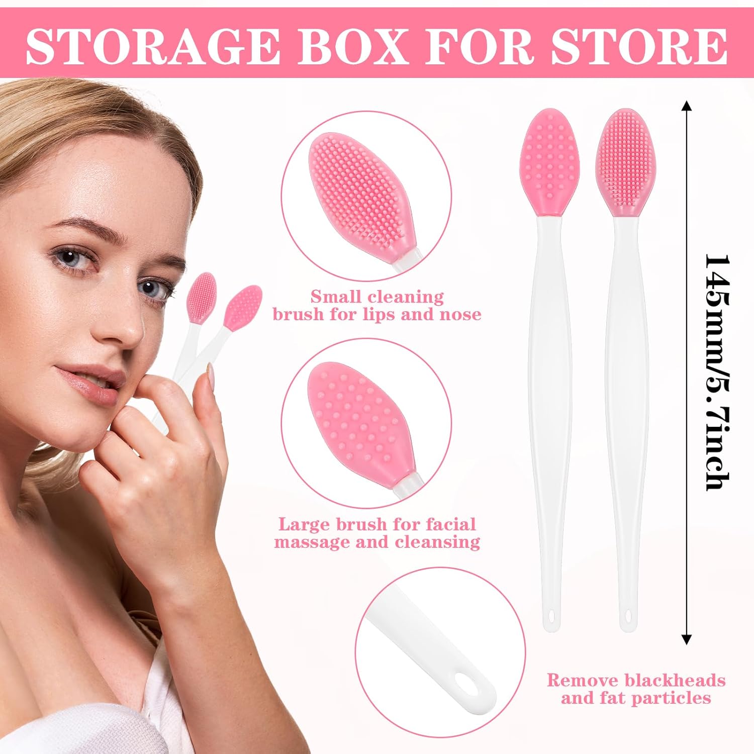 - silicone nose brush: In addition to removing dead skin cells from your lips, this pore brush for face can also help you remove dead skin and blackheads from your nose and face through massage, clean pores, and remove makeup residue, giving you clearer and smoother skin, making you younger and younger