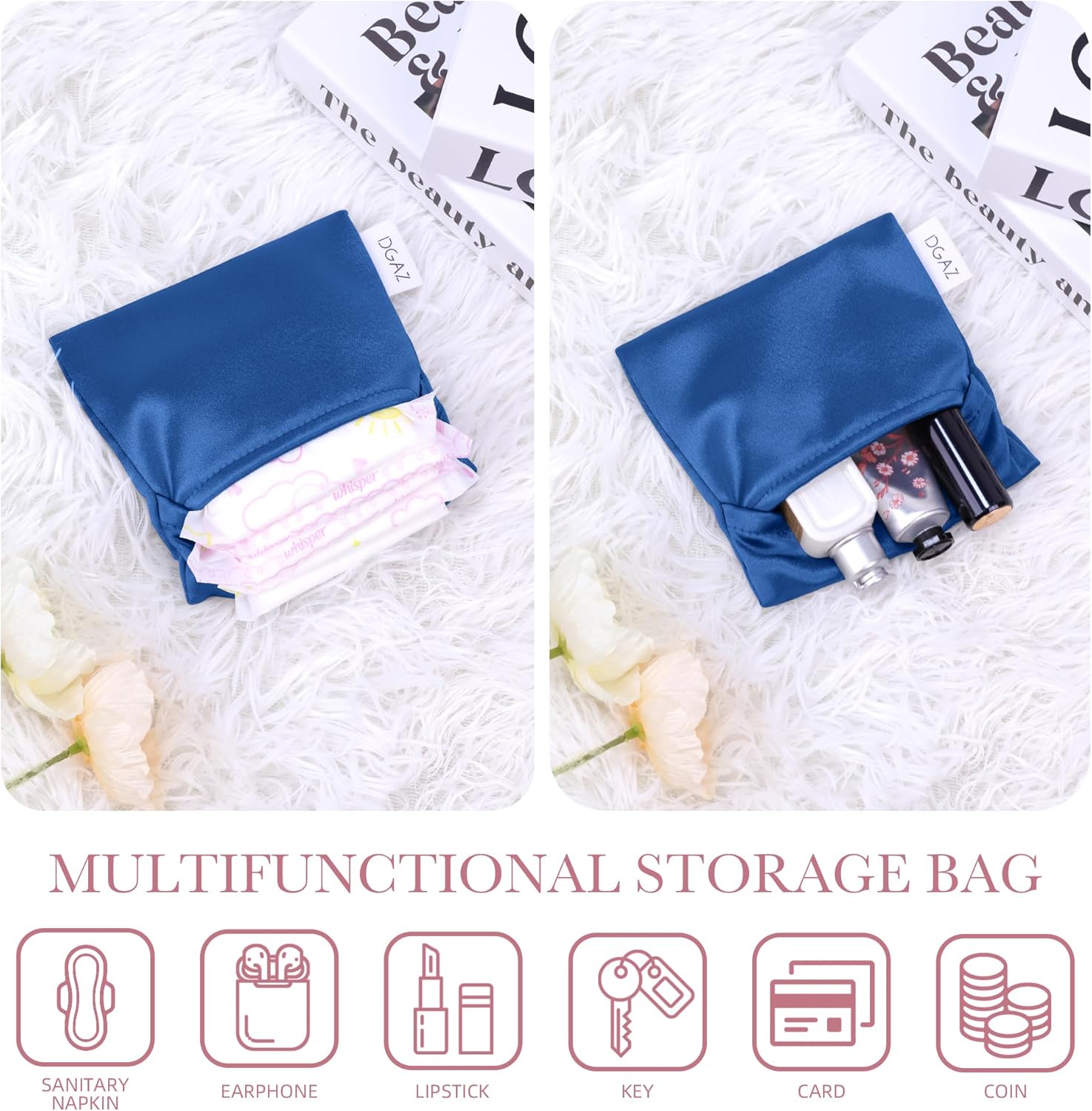 DGAZ Silk Sanitary Napkin Storage Bag, Period Bags for Teen Aged Girls, Portable for Panty Liners/Menstrual Cup/Small Tampons,Mini Makeup Bags for Purse(Blue Jean)