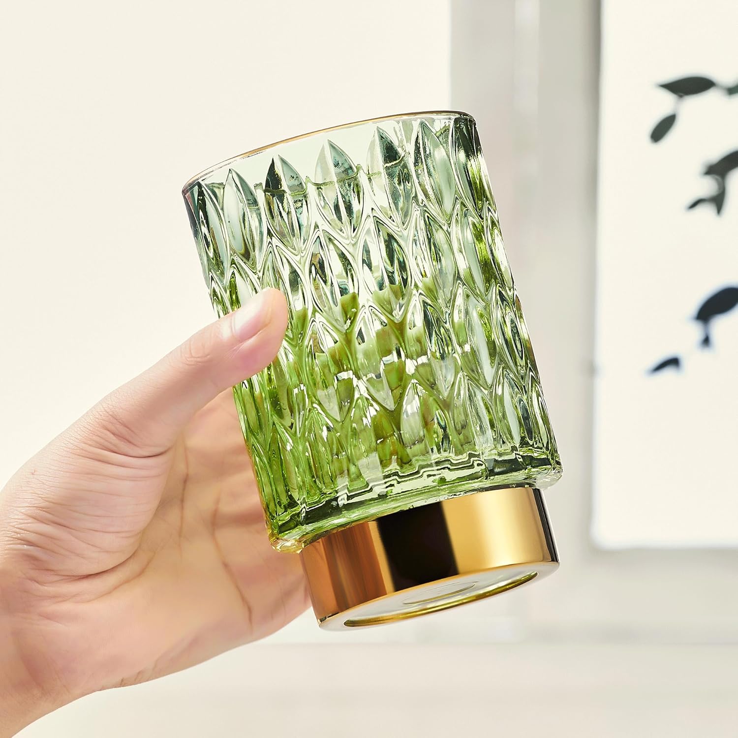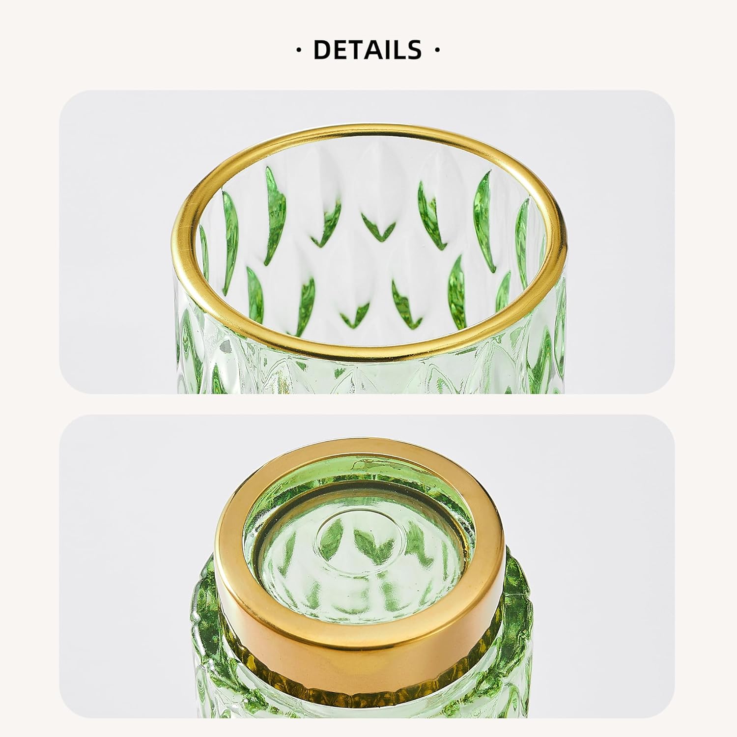 - Exquisite Design: Made of high-quality glass and a golden metal base.Its exquisite striped design on the glass body, complemented by the metal gold plating on the bottle mouth's top edge,sturdy and stylish.