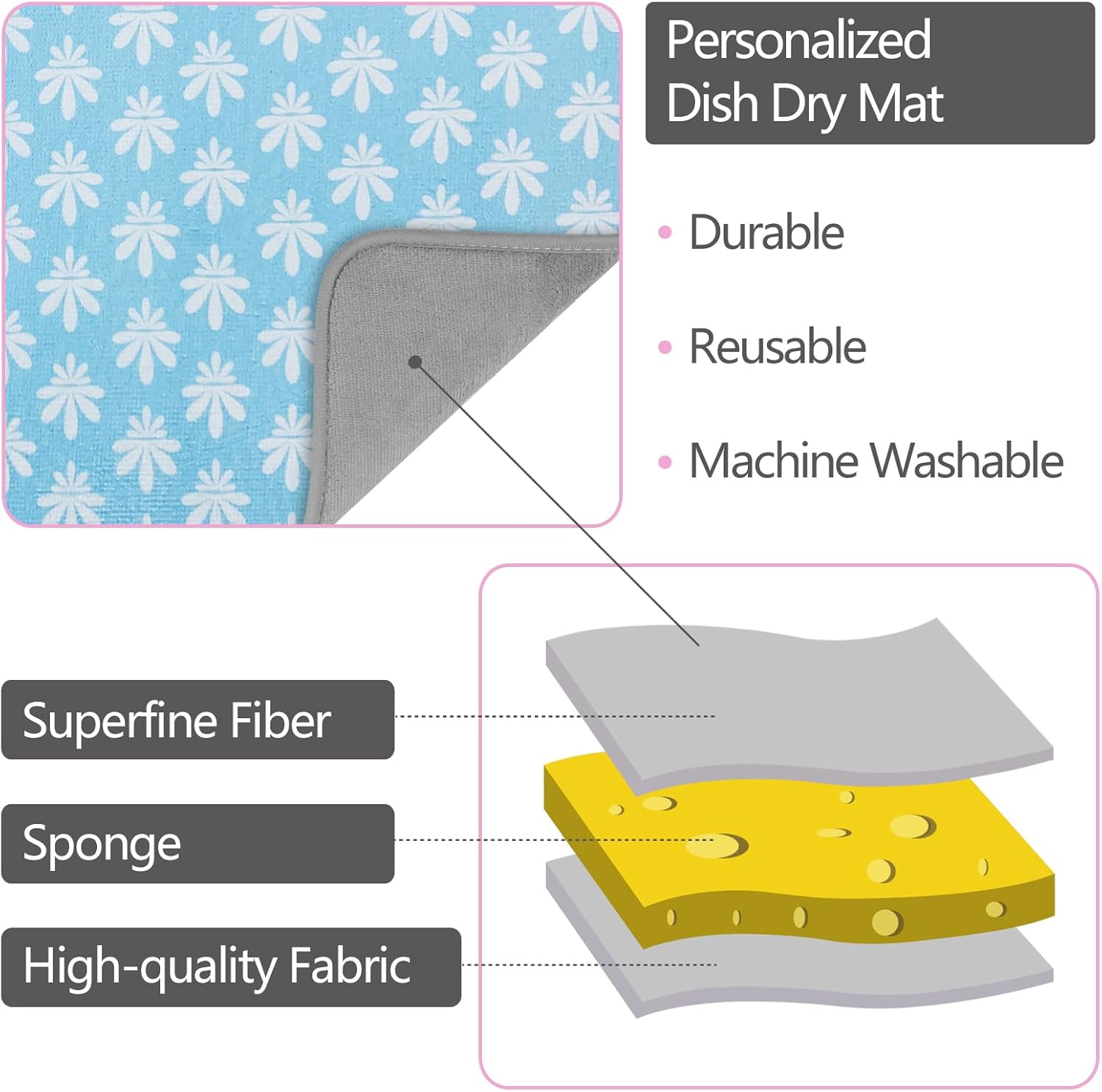 - 🌈 CREATIVITY AND STRONG ABSORPTION: can't stand wet dishes and dry mats? Buy one of our dish mat drying kitchen mat. microfiber dish drying mat, the surface can quickly absorb water 2-4 times its own weight. Help your crockery and tableware dry faster and more hygienically, and keep the table completely dry