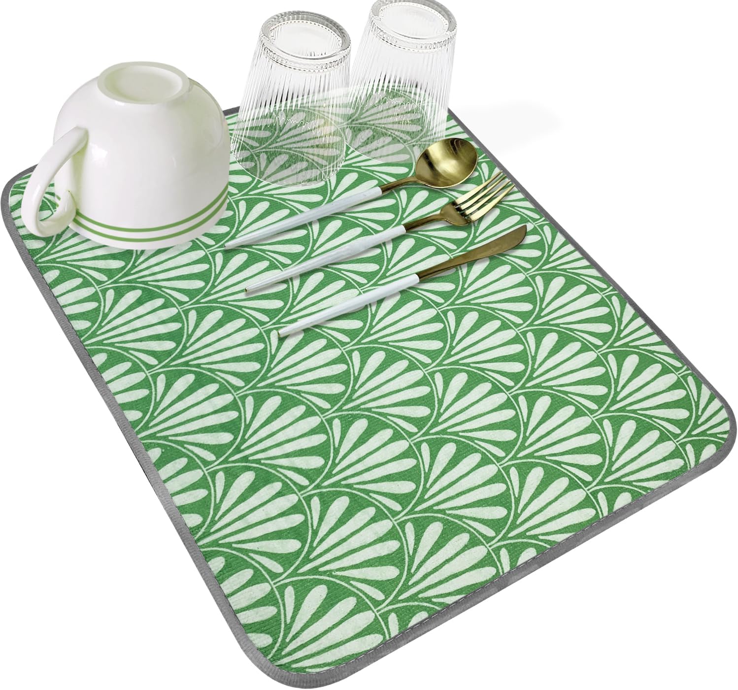SHIYUE Dish Drying Mat for Kitchen Counter Super Absorbent Spring Kitchen Decor Microfiber Drying Matainers Rack Fast Pad Dish Drainer Mats(Bohe Green Flower,16''x18'')