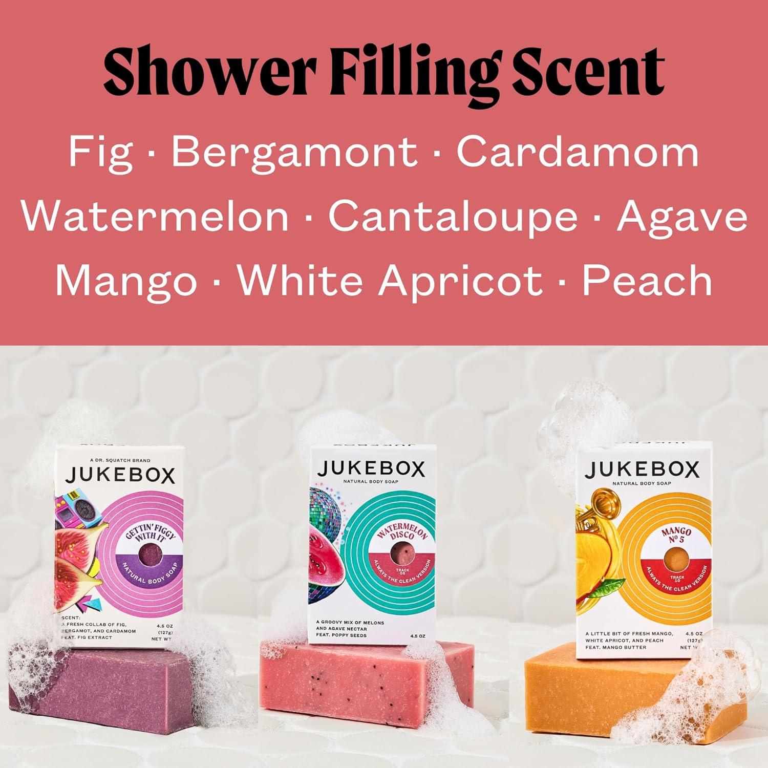 JUKEBOX Soap, Natural Bar Soap for Women,Watermelon Disco, Gettin' Figgy with It and Mango No. 5! Scents,Cold Process, Bath Soap,No Harmful Ingredients,All Skin Types-a Dr. Squatch Brand-4.5oz, 3 Pack