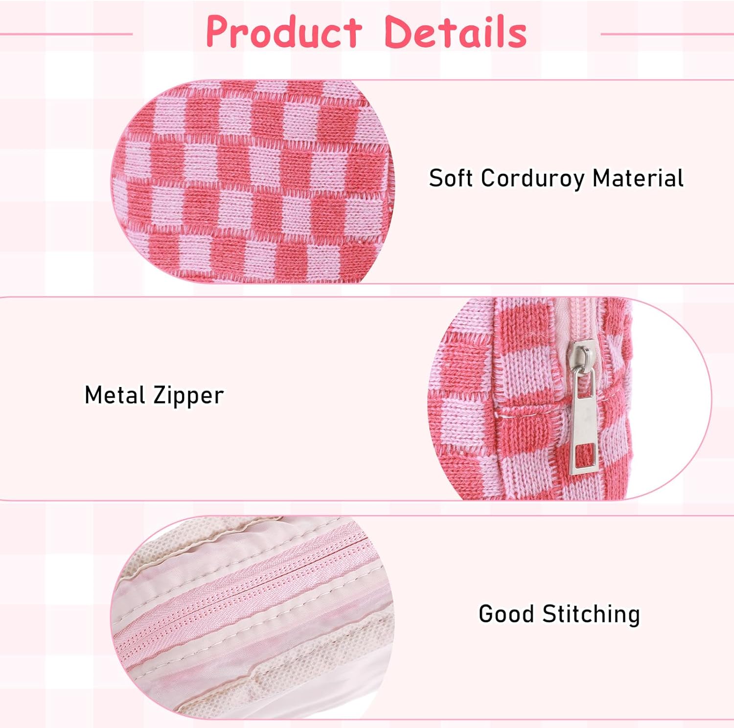 - 【Cute Checkered Pouch】Our pad pouch features a unique and eye-catching checkered pattern, pink and white cute design that is sure to turn heads