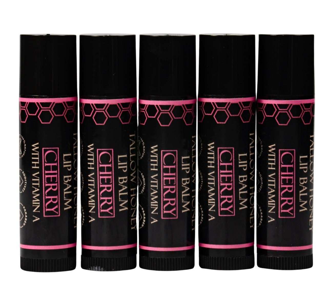 Organic Tallow Lip Balm (5 Pack) - Hydrating With Organic Italian Olive Oil, Pure Grass Fed Tallow, and Beeswax - Long Lasting Lip Therapy (5 Pack, Cherry)