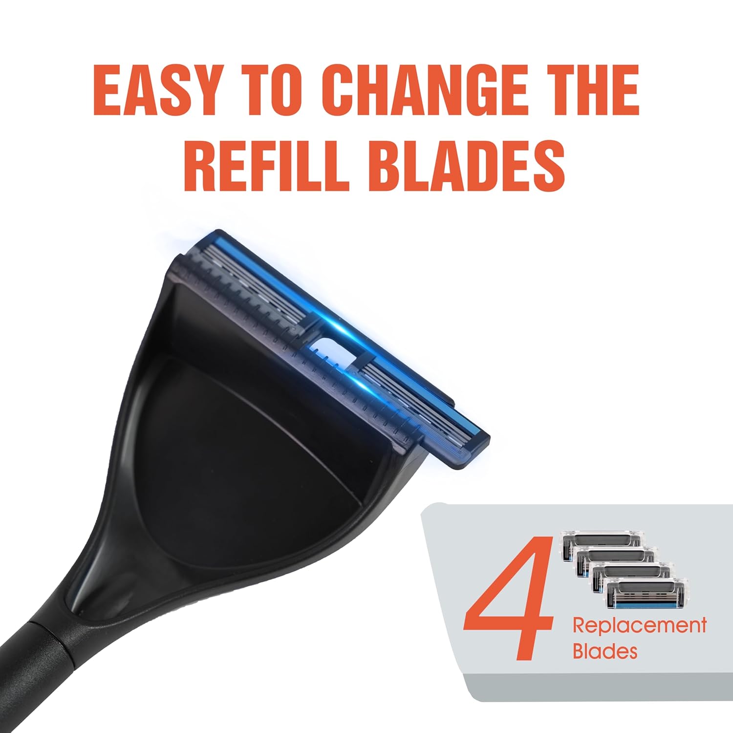 EASACE Back Shavers for Men,Back Hair Shaver for Men with 8pcs Safety Blade,Back & Body Hair Trimmer,Long Handle 21 Inch Adjustable, Curved DIY Shaver