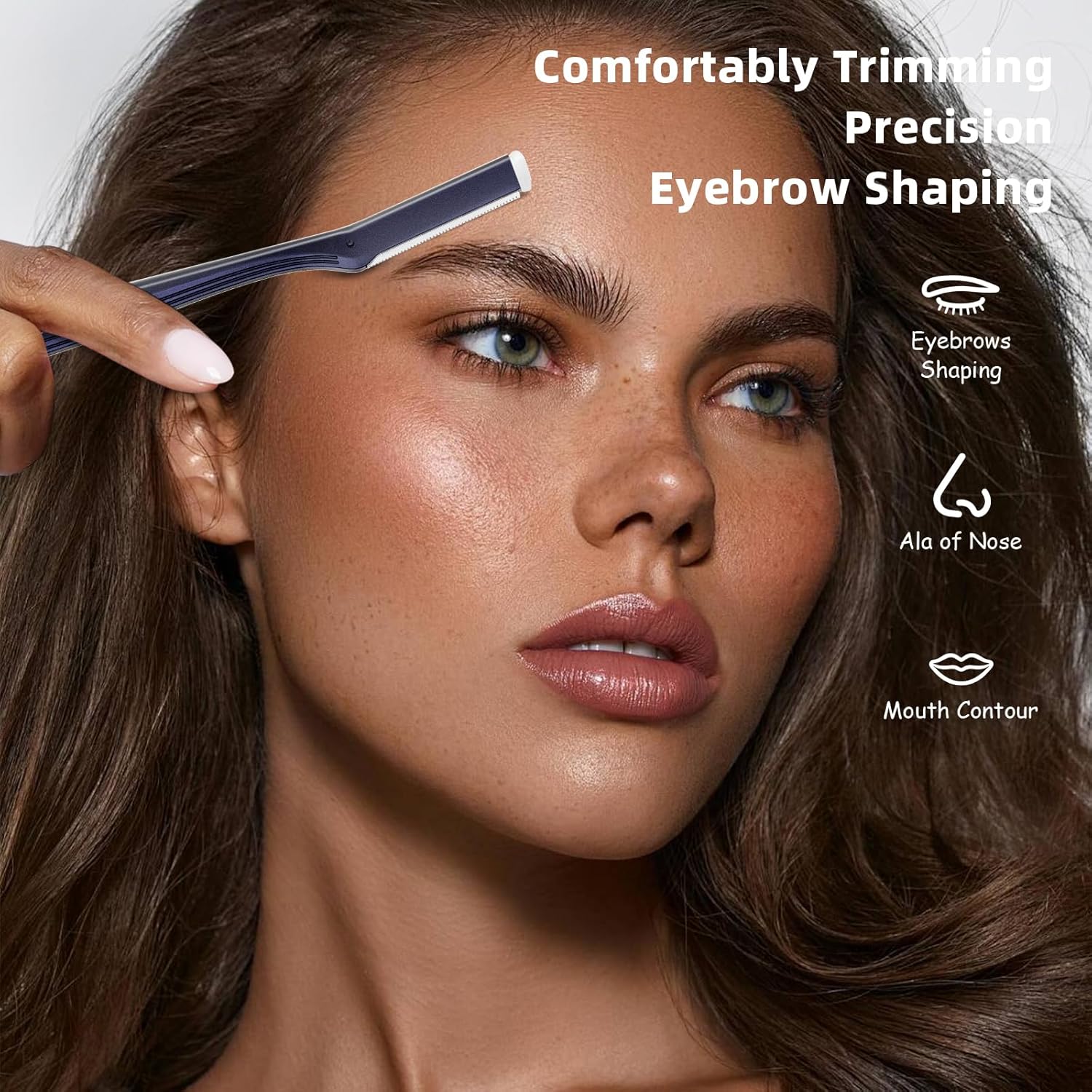 - Safe and Sharp Blades: Crafted with premium stainless steel blades for exceptional sharpness, this face shaver glides smoothly to remove fine hair with ease. The micro-guard design helps reduce skin irritation and nicks, making it ideal for beginners and gentle on all skin types.